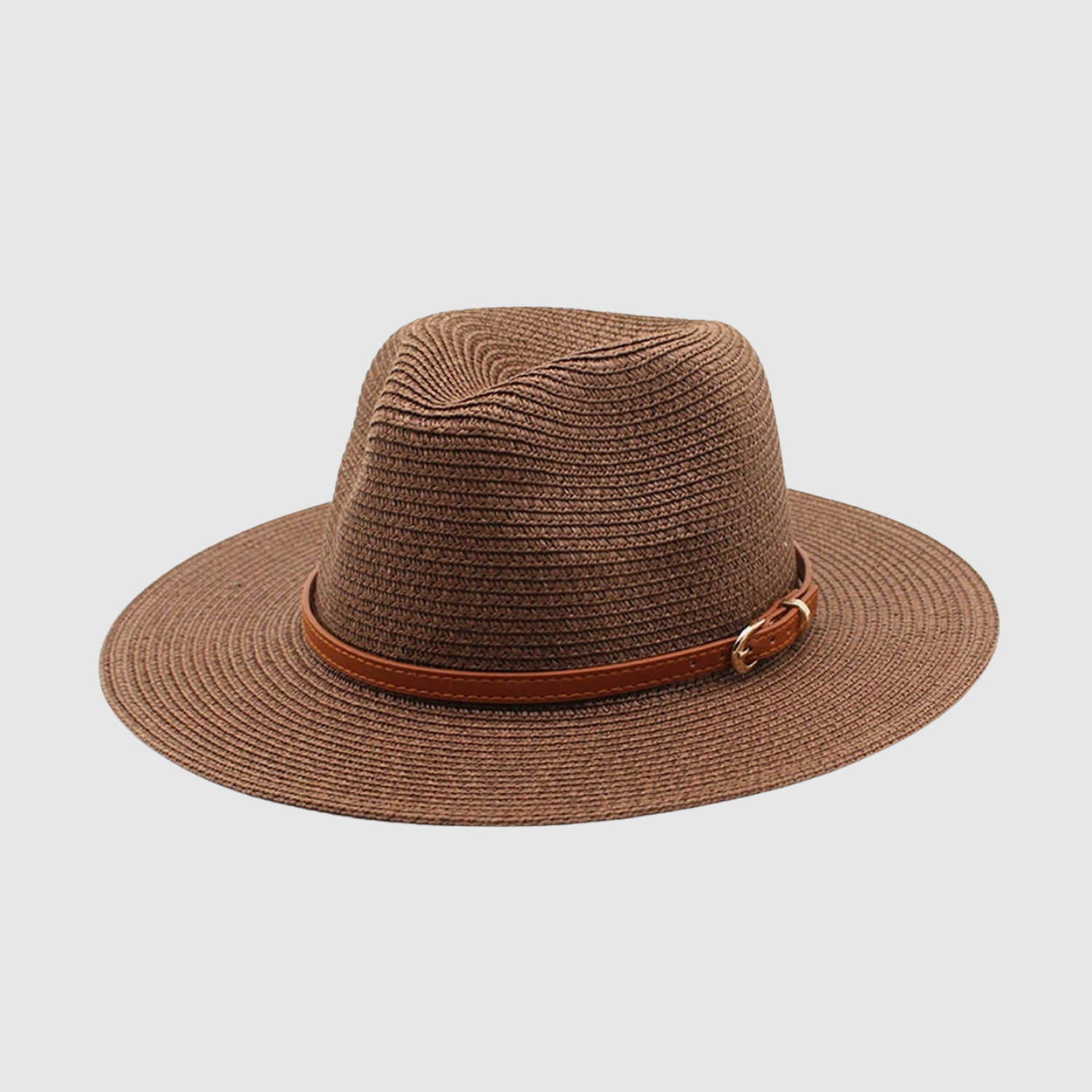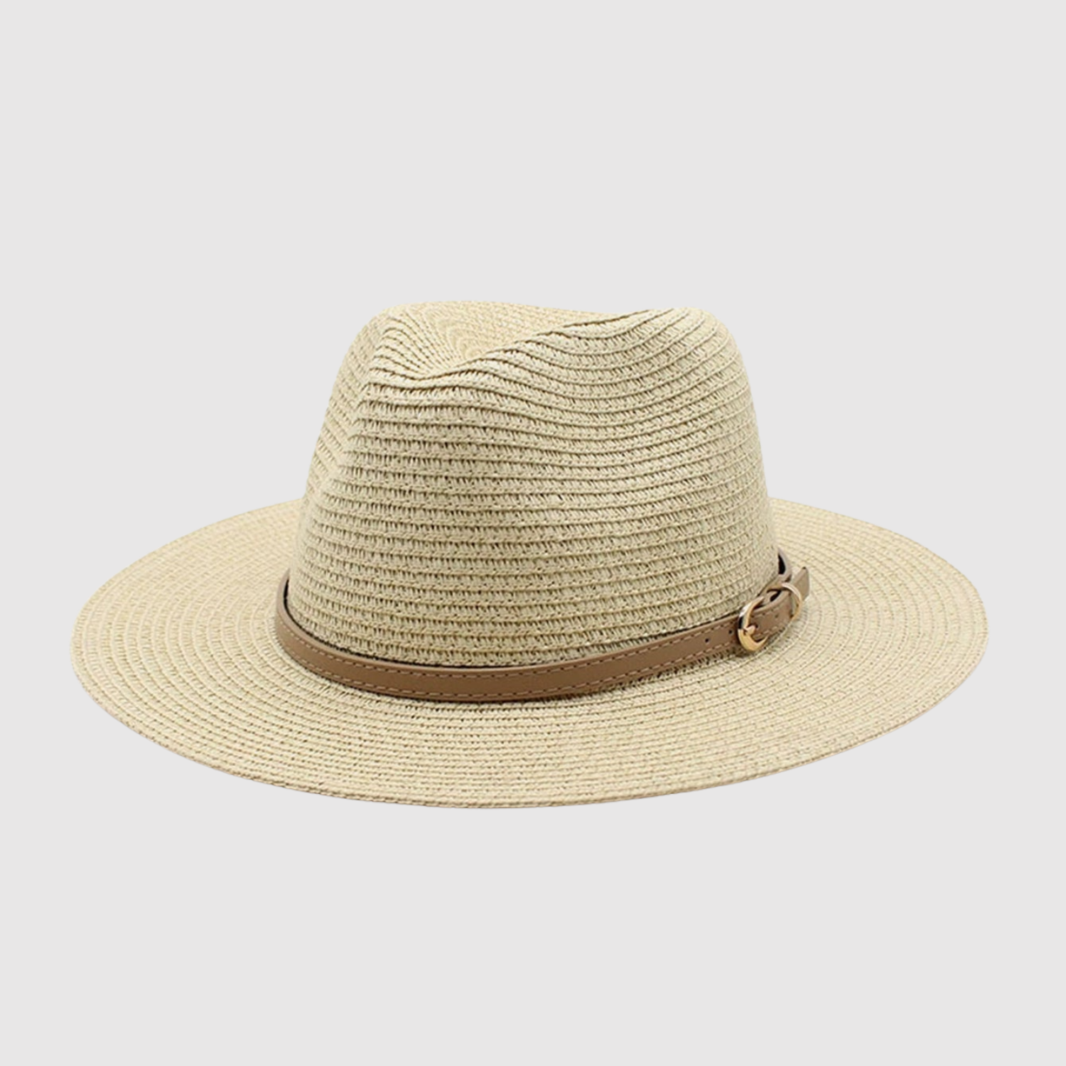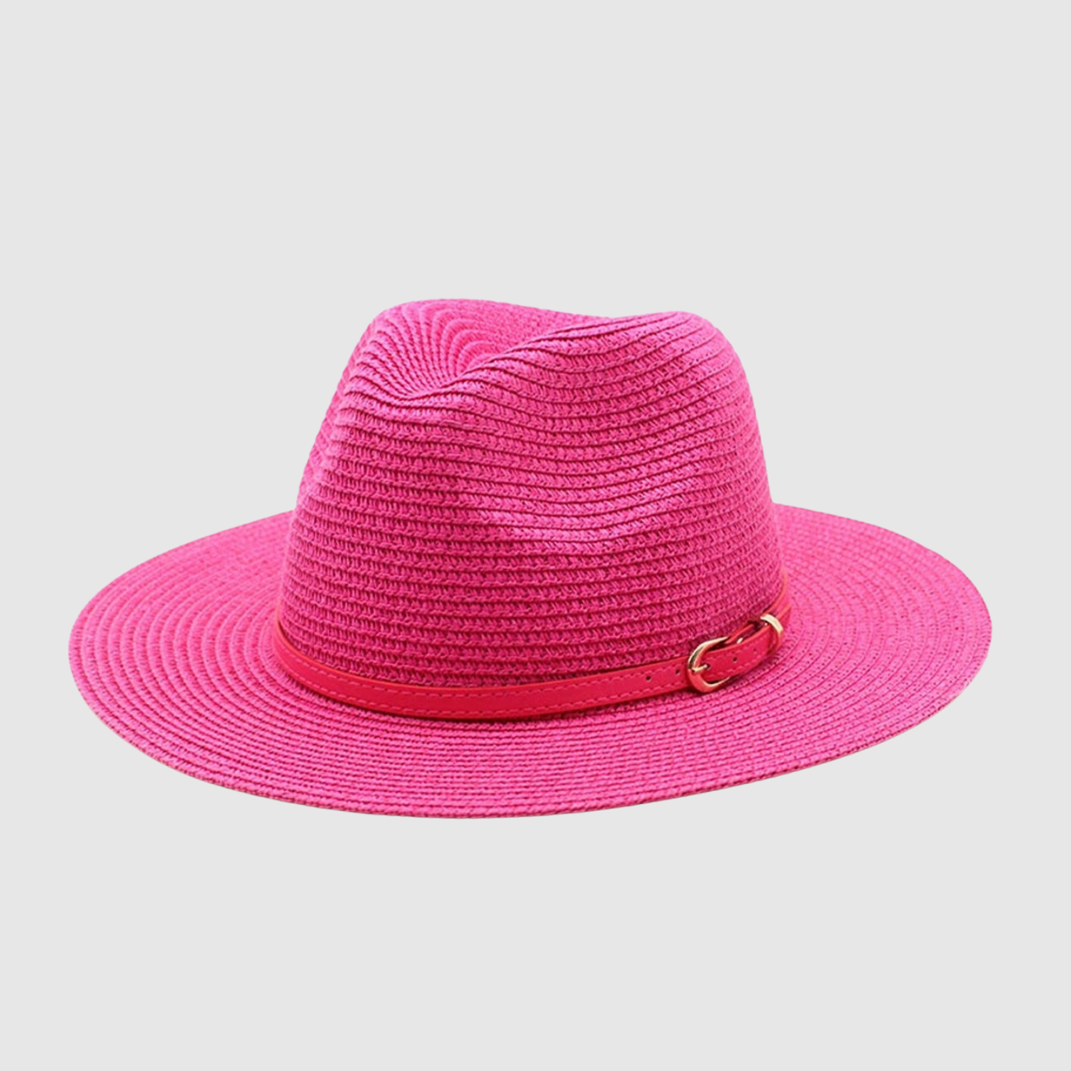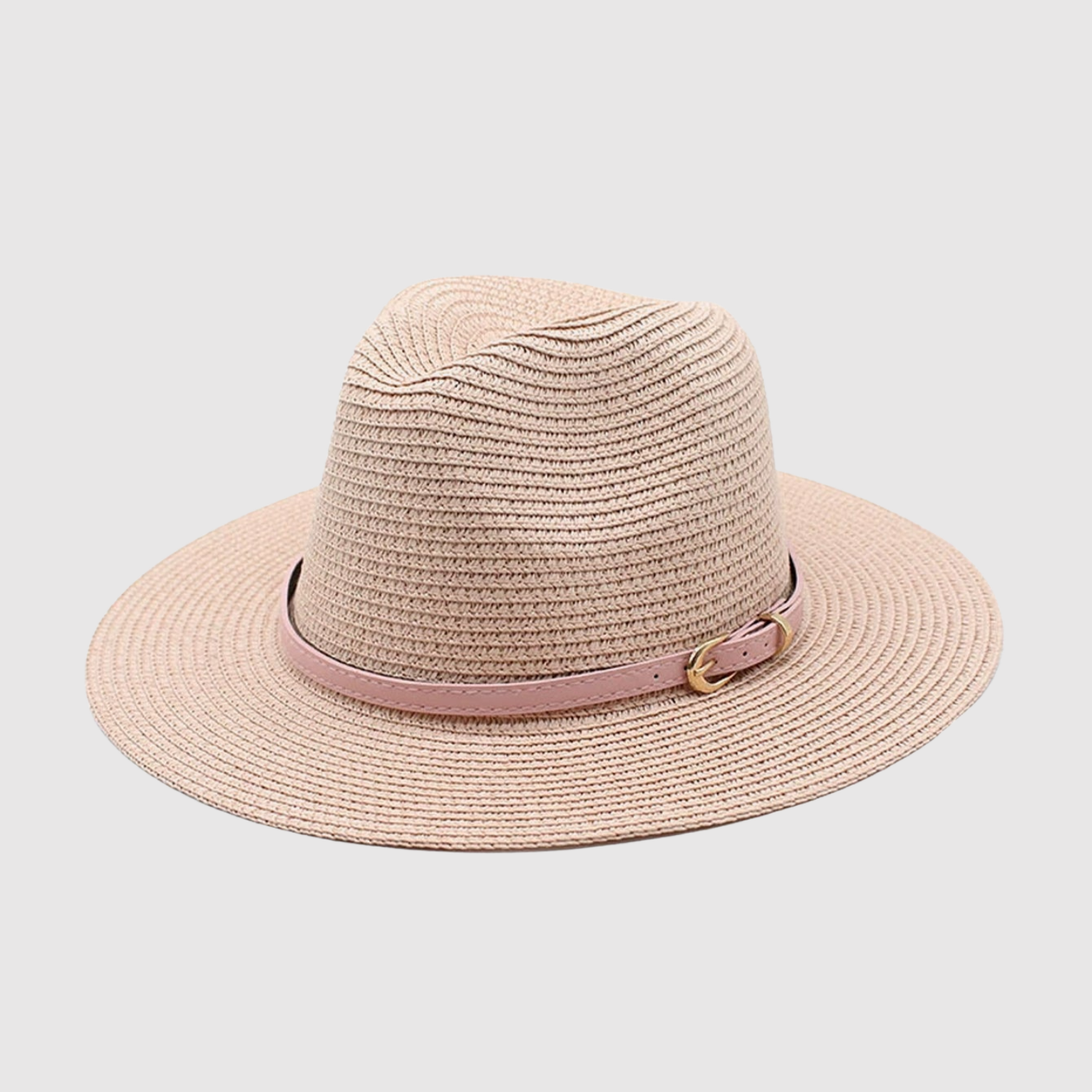 Класическа слънчева шапка с вид на слама, налична в широк спектър от цветове, за да можете да съчетаете собствения си стил. Тя е лека, удобна и предлага ефективна защита от слънцето. Перфектна за летни дни, плажни разходки и ваканции, където стилът и функционалността са важни.