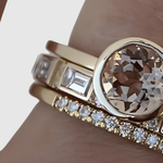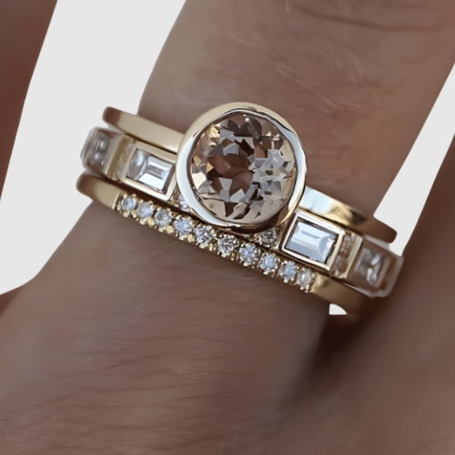 Този пръстен съчетава елегантна овална форма и фина обрамовка от малки камъни, които придават изискан и луксозен вид. Перфектен избор за специални поводи или ежедневна елегантност.