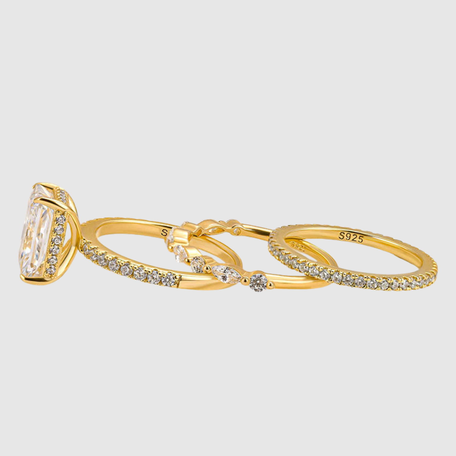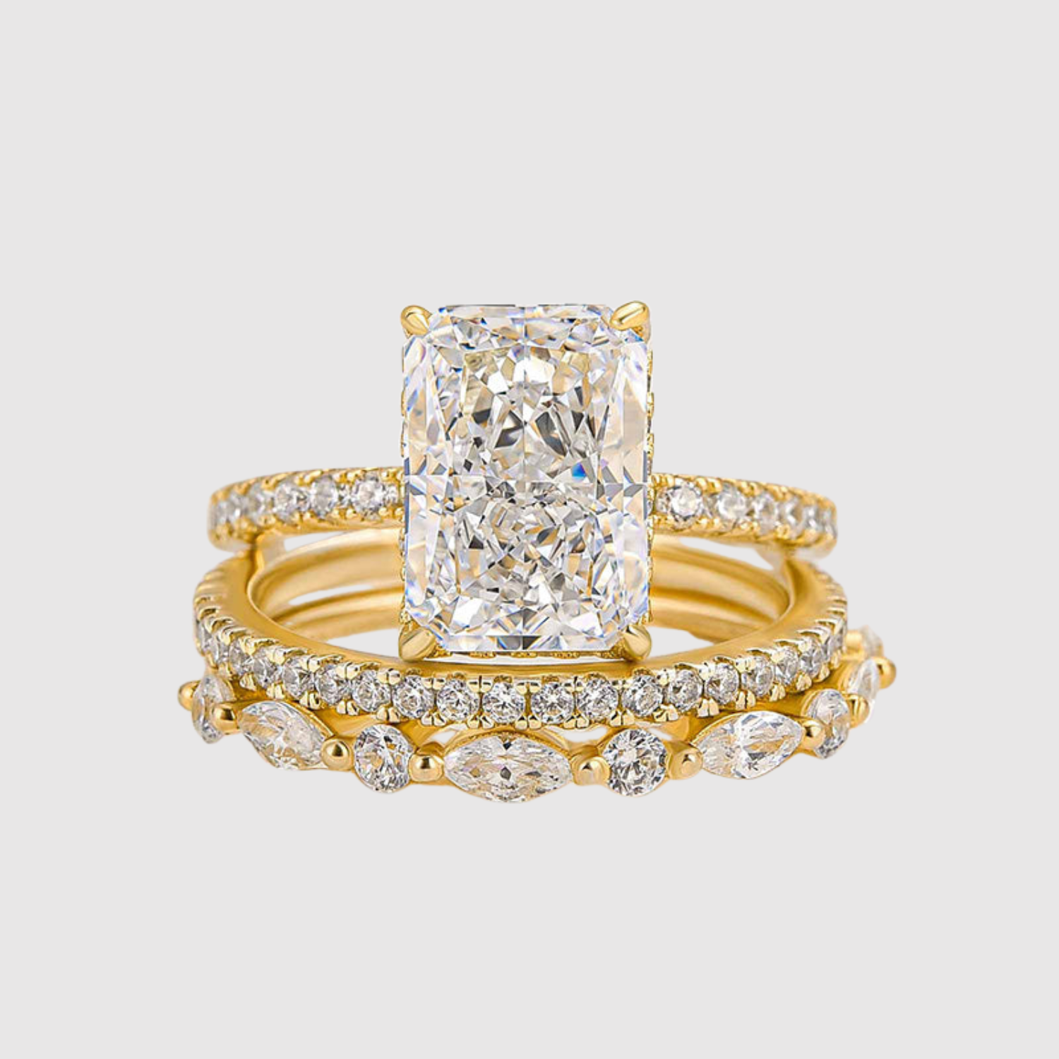 Десислава – Луксозен златен пръстен с правоъгълен камък и блестящ обков