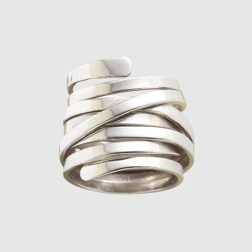 Този уникален пръстен впечатлява с многослоен сребрист дизайн, който съчетава модерна визия и изтънчена простота. Изработен с внимание към детайла, той е идеалният акцент към всяка визия – от ежедневна до вечерна.