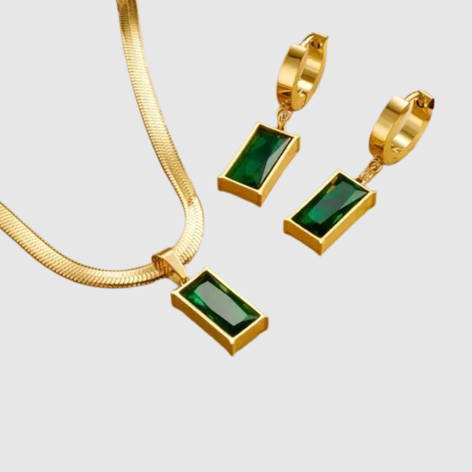 Елица - Комплект бижута „Лунара“ със златно покритие и зелени камъни