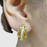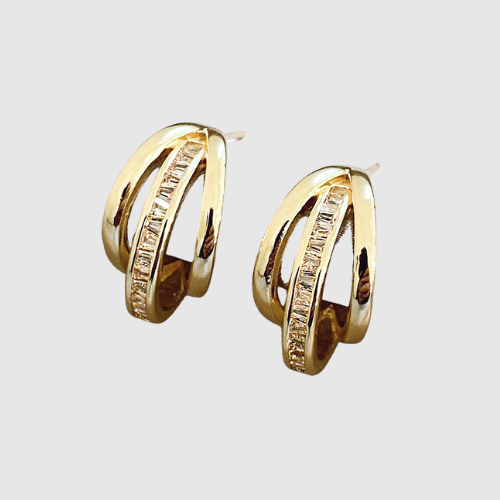 Тези златни обеци комбинират класическа форма с модерна изчистеност. Изработени са с фини камъни, които улавят светлината и придават изискан блясък.