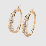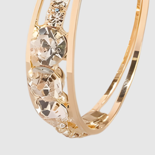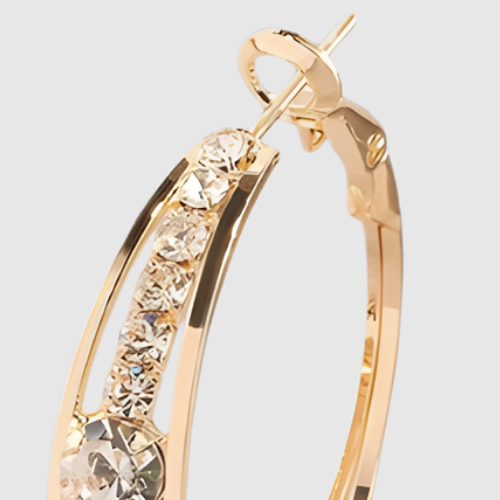 Тези елегантни обеци тип халка съчетават златист блясък и редица кристали, които улавят светлината при всяко движение. Подходящи както за ежедневие, така и за специални поводи – създадени да подчертаят вашата женственост и увереност.