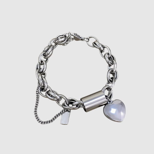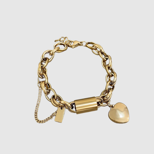Тази гривна съчетава силен характер и изтънчена женственост. Масивната верижка и деликатното сърце я превръщат в акцент за всеки стил.