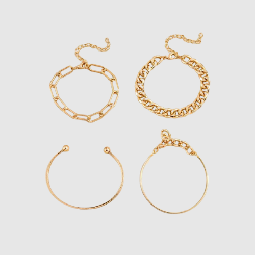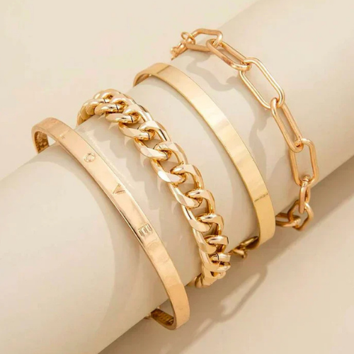 • Четири различни гривни – комбинират гладки, верижни и отворени дизайни