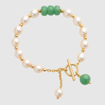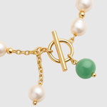Тази изискана гривна комбинира естествени перли с зелен камък, създавайки усещане за баланс и женственост. Идеална за всякакви поводи – от елегантна вечер до ежедневен стил.