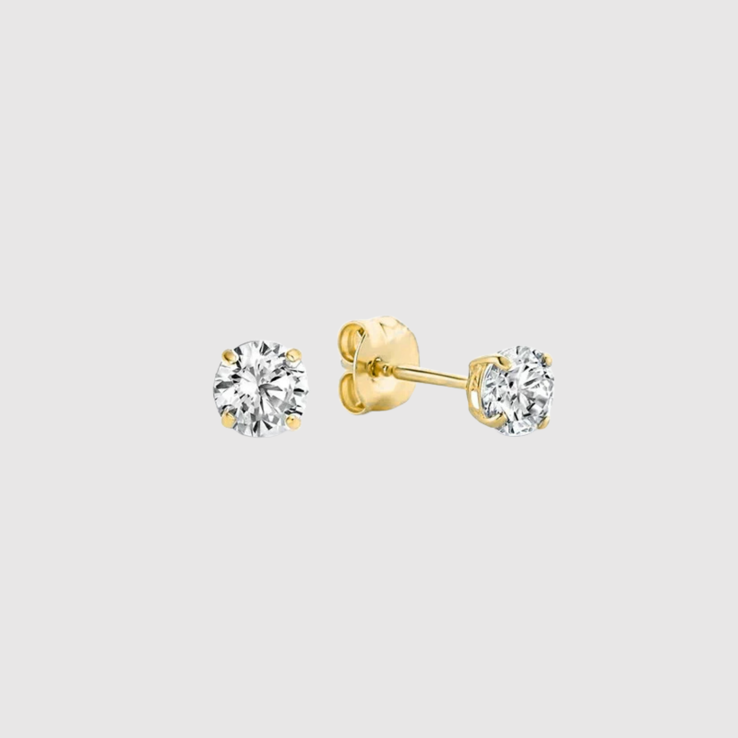 Тези фини златни обеци са изработени с внимание към всеки детайл, съчетавайки класическа елегантност и съвременен стил. Малките блестящи камъни придават деликатен, но ослепителен блясък, който подчертава естествената ти красота. Подходящи както за ежедневието, така и за специални моменти.