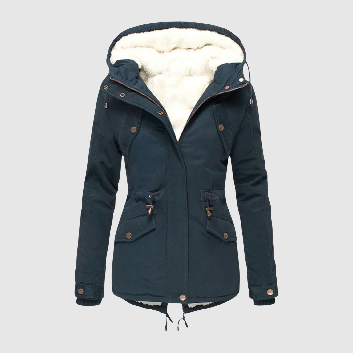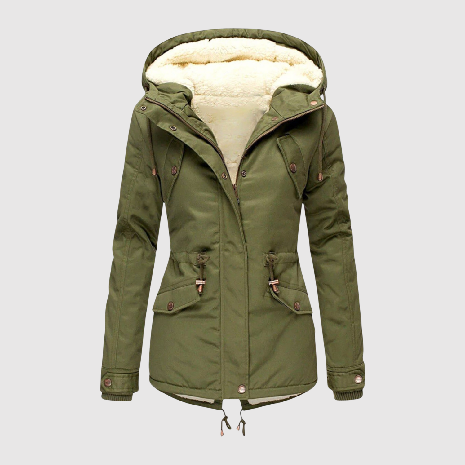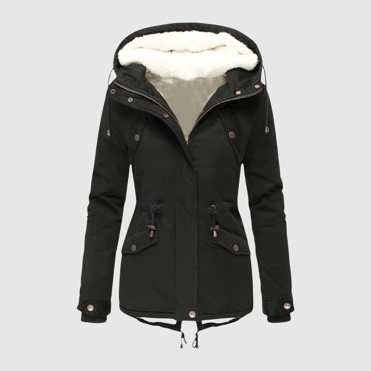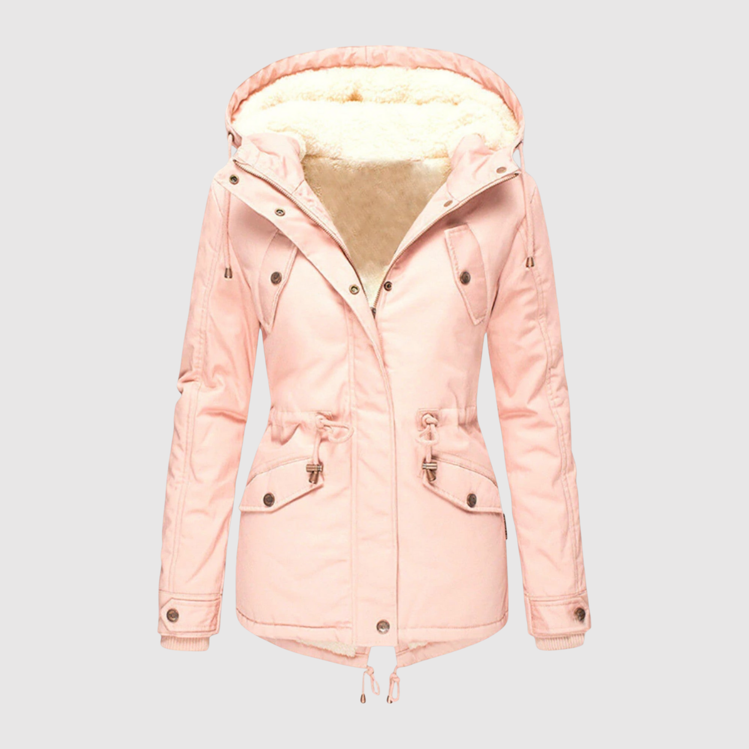 Тази подплатена зимна парка е топла, стилна и функционална. С флийсова подплата, регулируема талия и качулка с пухкава ръб, тя е готова да ви държи комфортно през цялата зима.