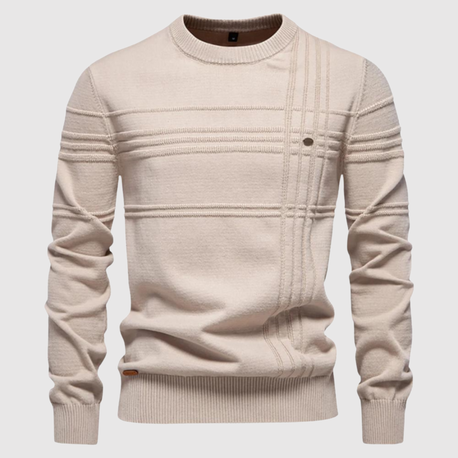 Този пуловер комбинира проста елегантност с комфорт. Дискретните линейни детайли на гърдите придават модерен и изтънчен вид, докато мекото материал ви държи топло, без да се чувства тежко. Перфектен както за работа, така и за свободно време.
