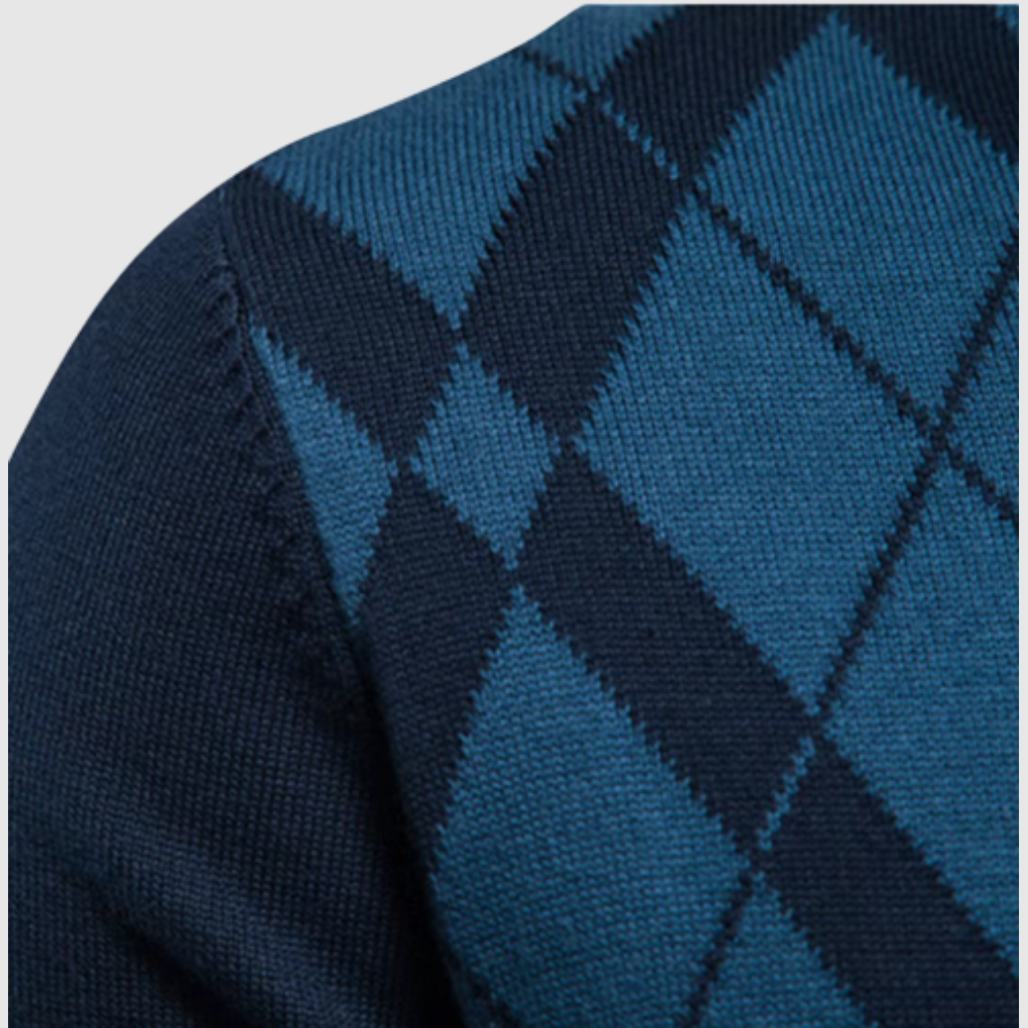 Стефан - Аргайл Стилна Джемпер с цип и висока яка