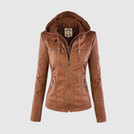 Елена - Дамска якета с кожен вид с качулка и ципове