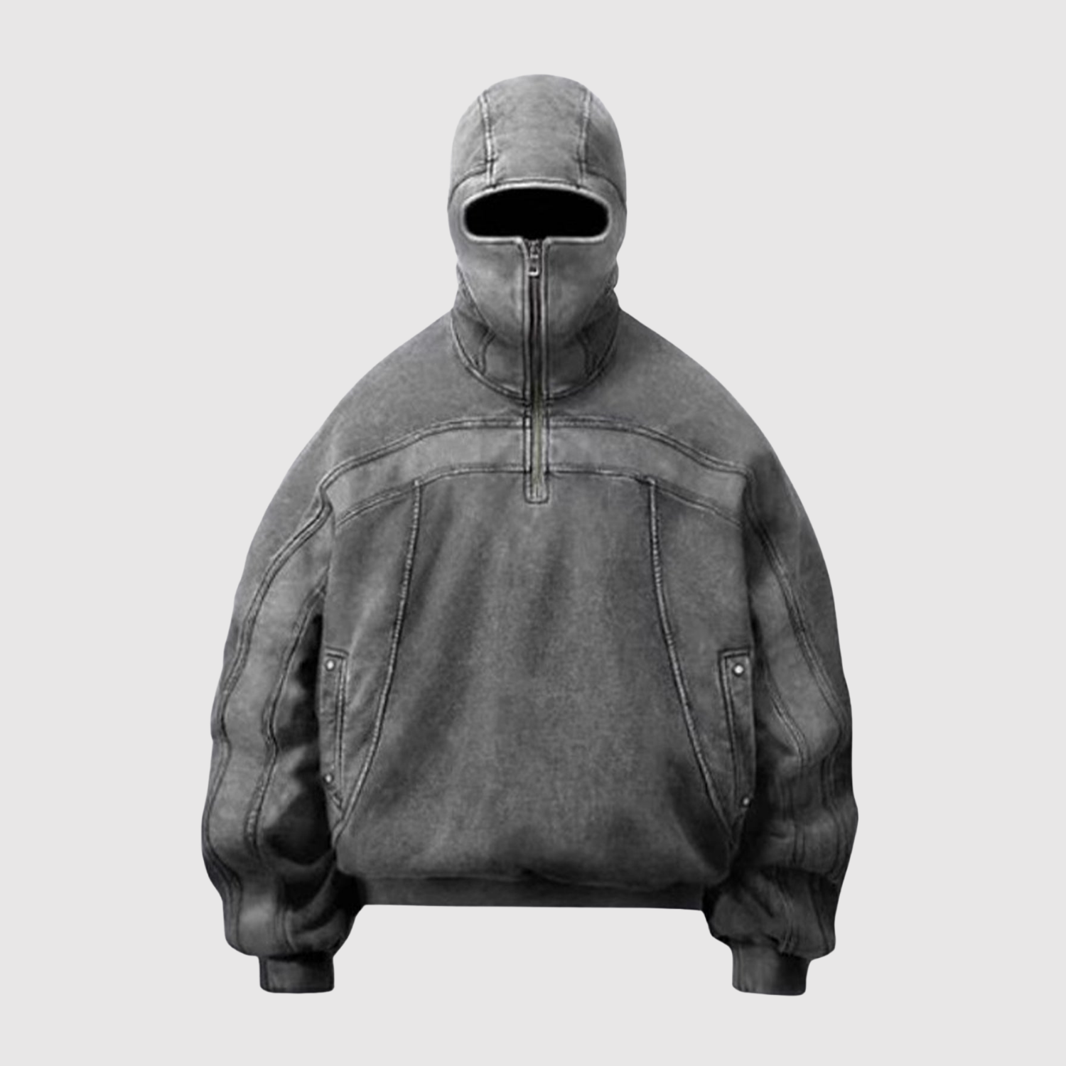 Уникален суитшърт с пълен цип, който може да се закопчава напълно до качулката за максимална защита и футуристичен вид. Обемната форма предлага както комфорт, така и модерен streetwear израз. Перфектен за вас, ако искате да се откроите.