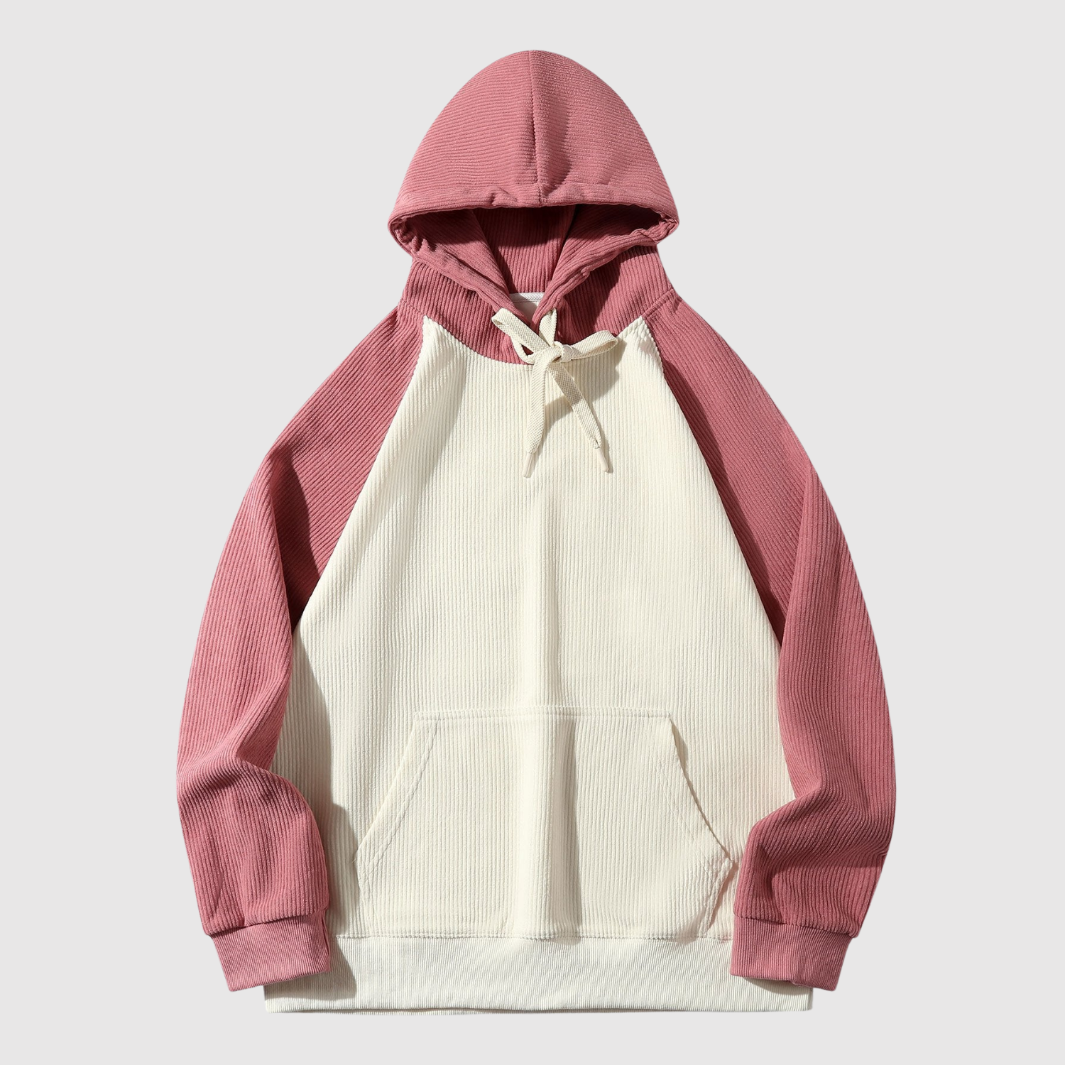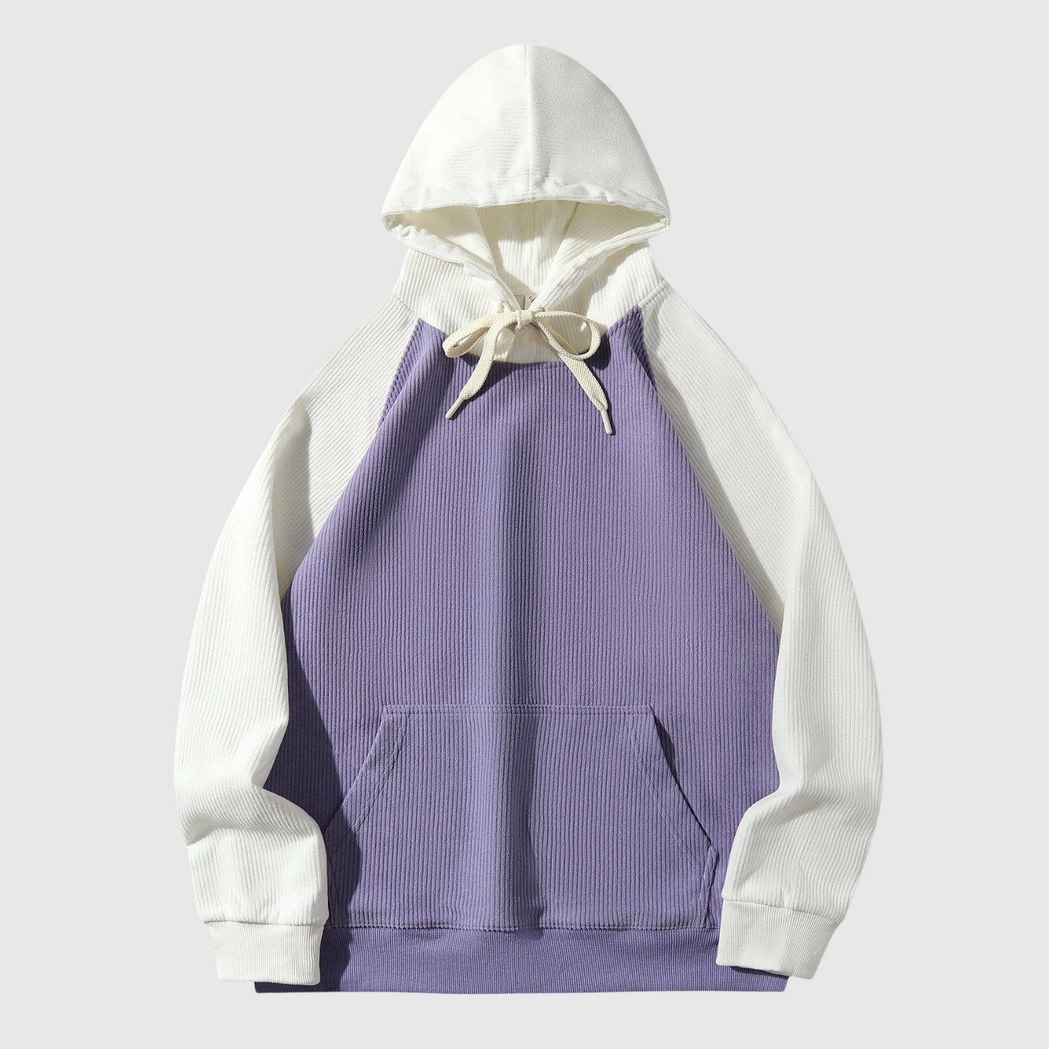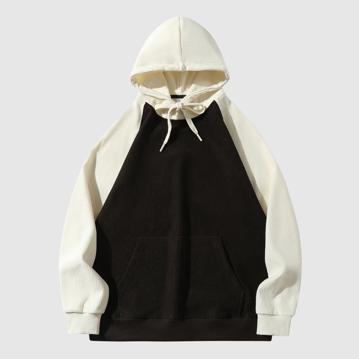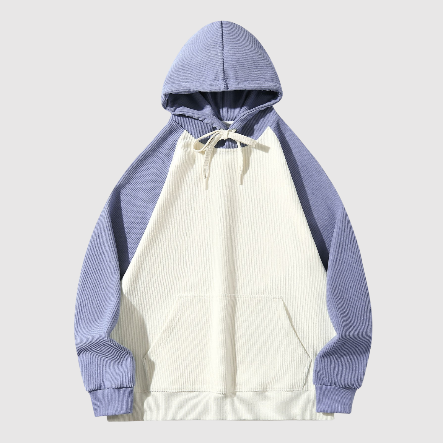 Удобно худи с рибена структура и дизайн с цветен блок, което съчетава простота с модерен streetwear вид. Перфектно за ежедневна употреба, тренировка или релаксация. Мекото качество го прави любимец в гардероба на всеки.