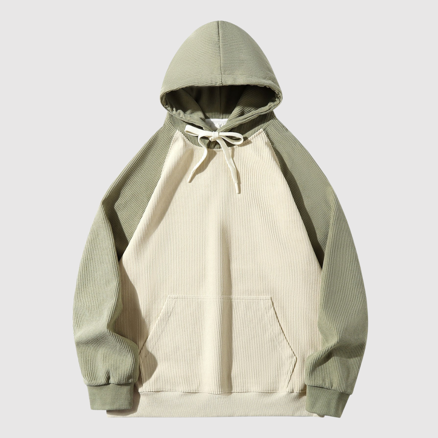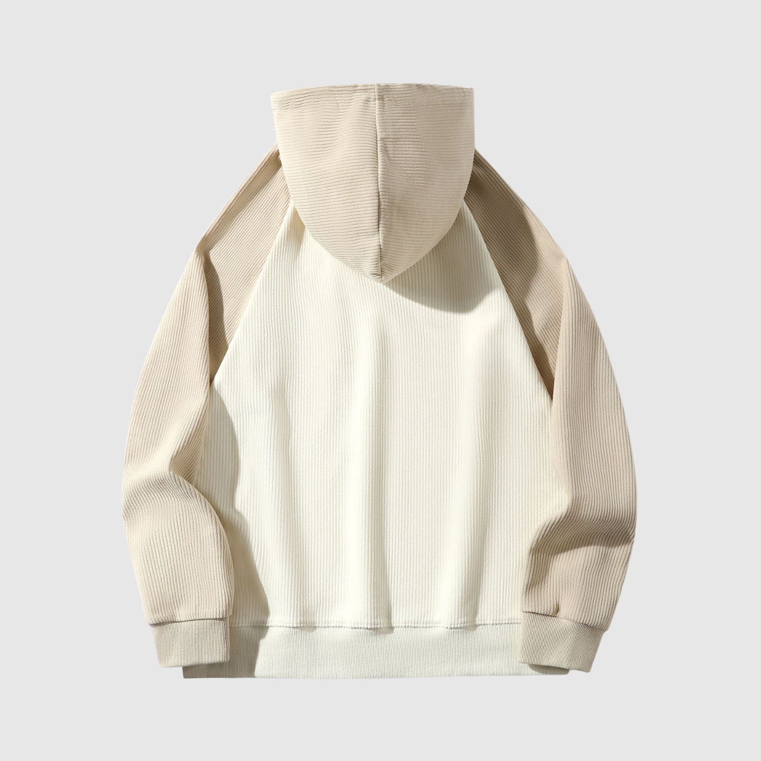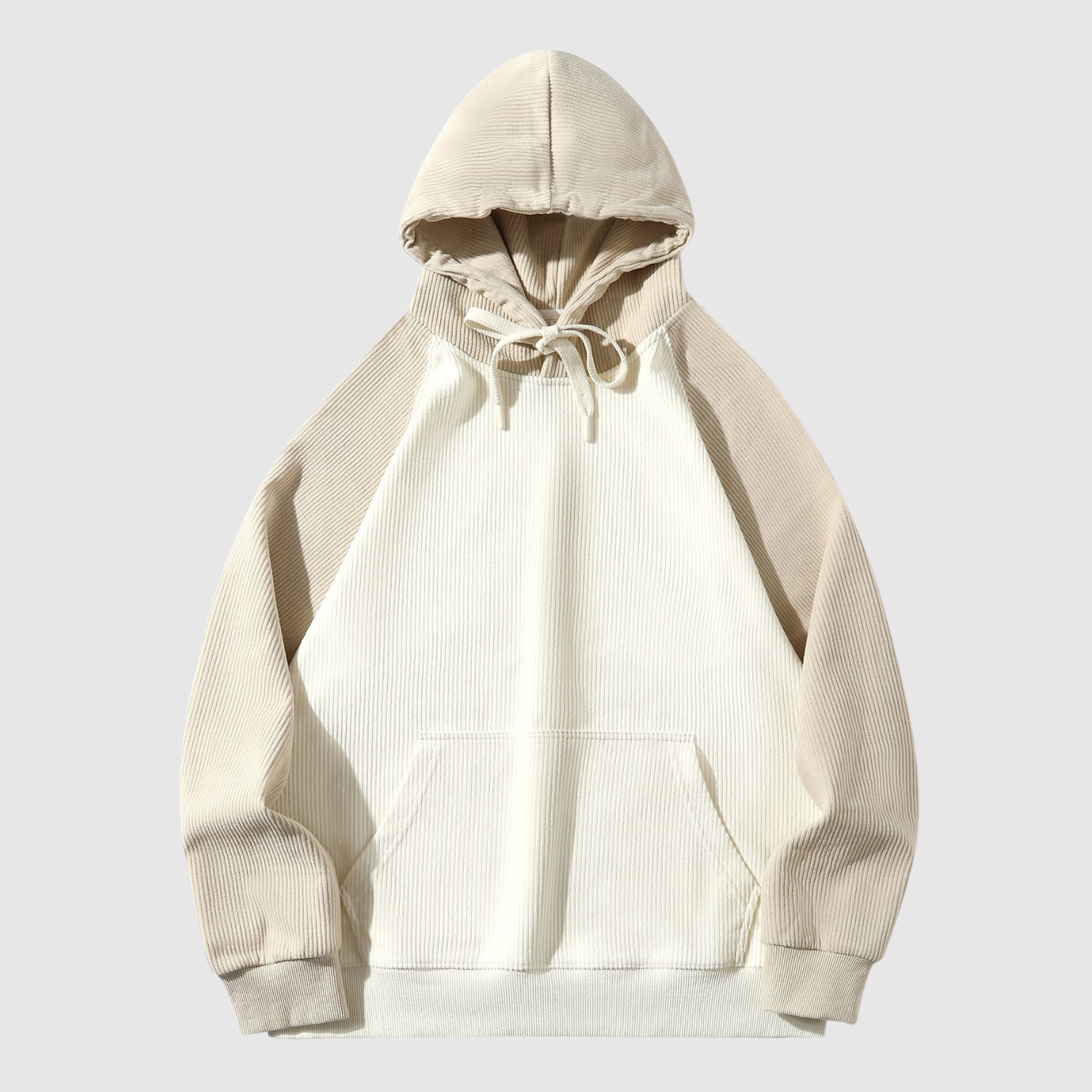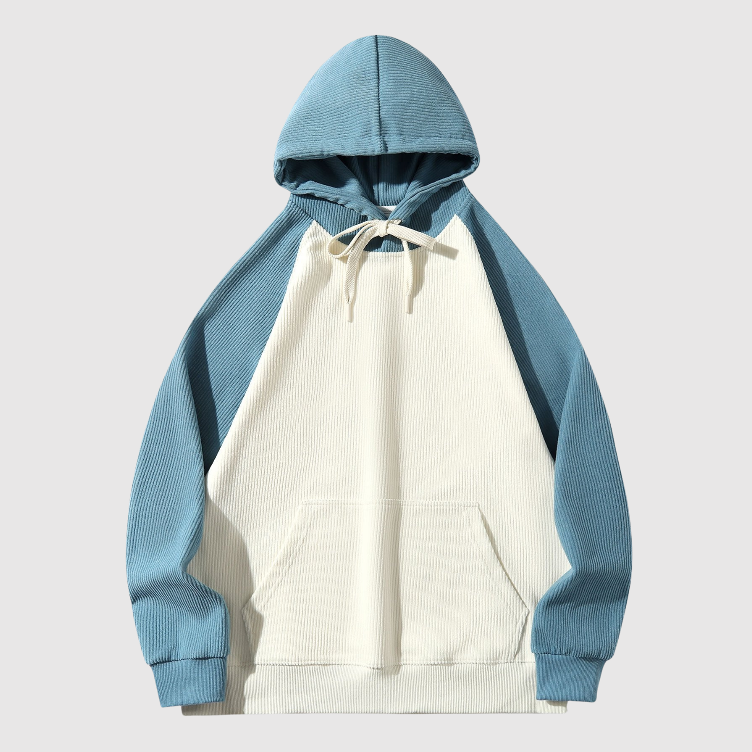 Удобно худи с рибена структура и дизайн с цветен блок, което съчетава простота с модерен streetwear вид. Перфектно за ежедневна употреба, тренировка или релаксация. Мекото качество го прави любимец в гардероба на всеки.