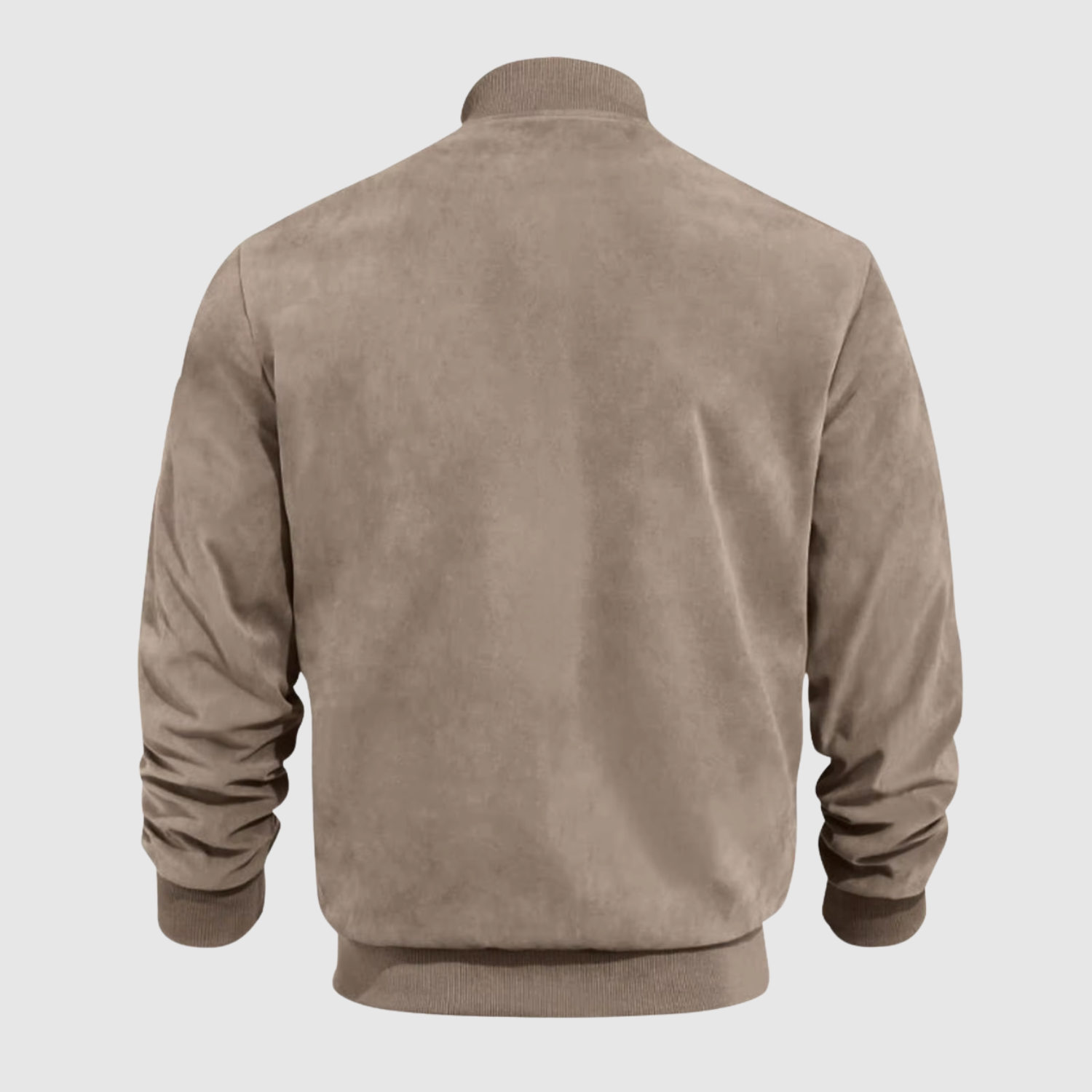 Това яке съчетава стил и удобство в едно. Изработено от мека велурена тъкан, то придава изискан и мъжествен вид, подходящ за ежедневието и градската среда. Леката подплата осигурява комфорт през по-хладните дни.