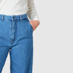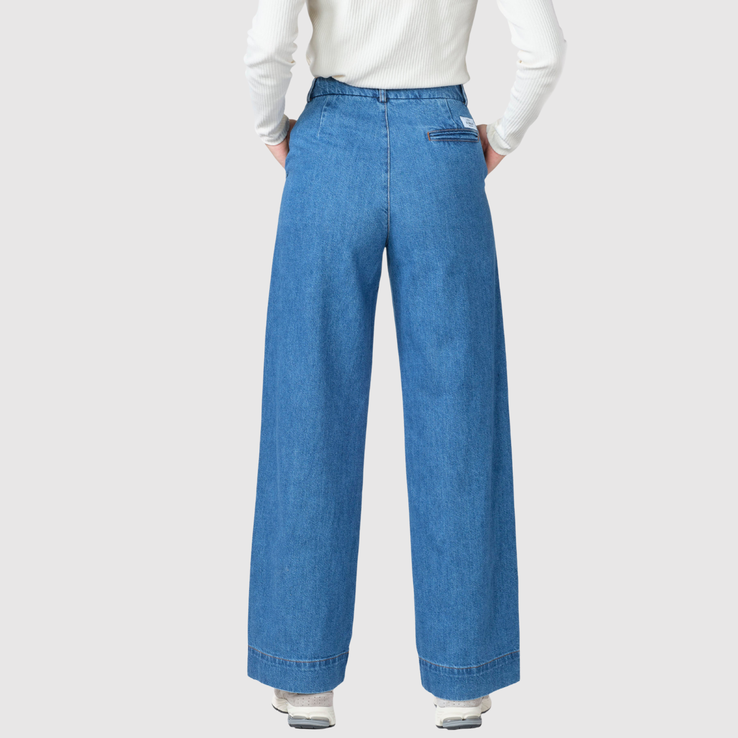 Тези дънкови панталони с висока талия предлагат елегантен, удължен вид. Светлосиньото stonewash добавя свеж и модерен акцент, докато широкият модел осигурява комфорт през целия ден. Основна част от всеки гардероб.