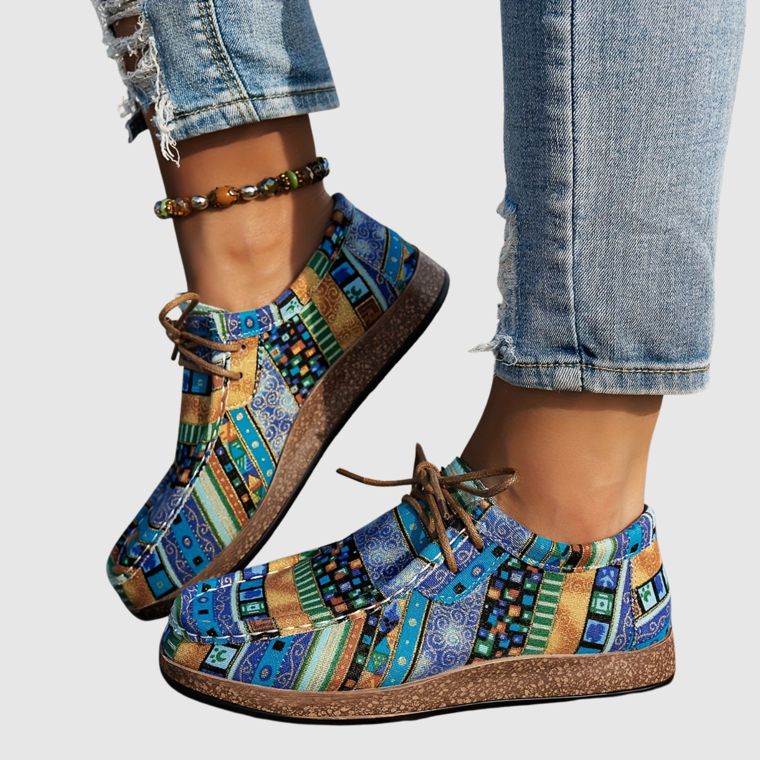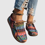 Тези дамски обувки комбинират уникален етнически модел с удобна форма, перфектни за вас, които обичате цветове и личен стил. Гъвкавата подметка и леката конструкция ги правят идеални за ежедневието и свободното време – задължително за всеки почитател на бохо стила.