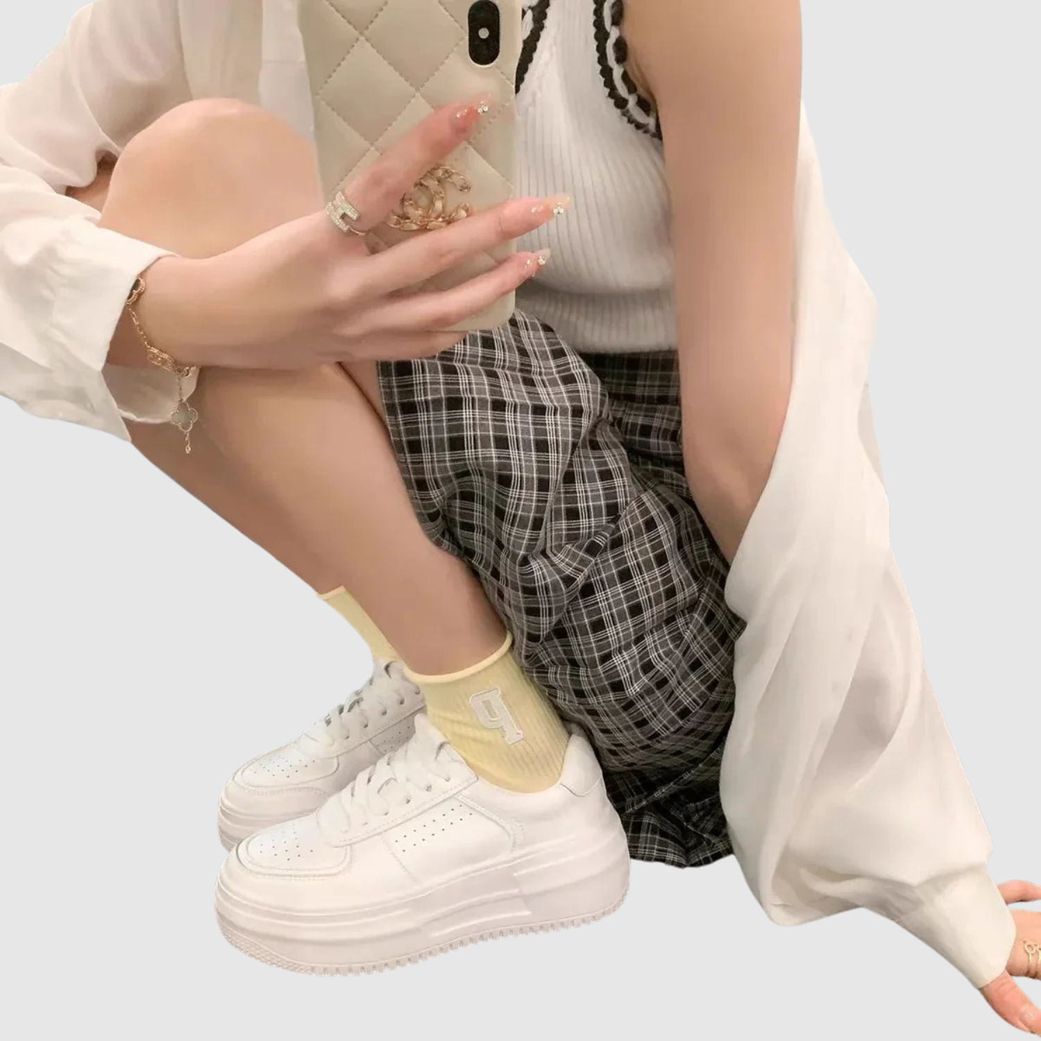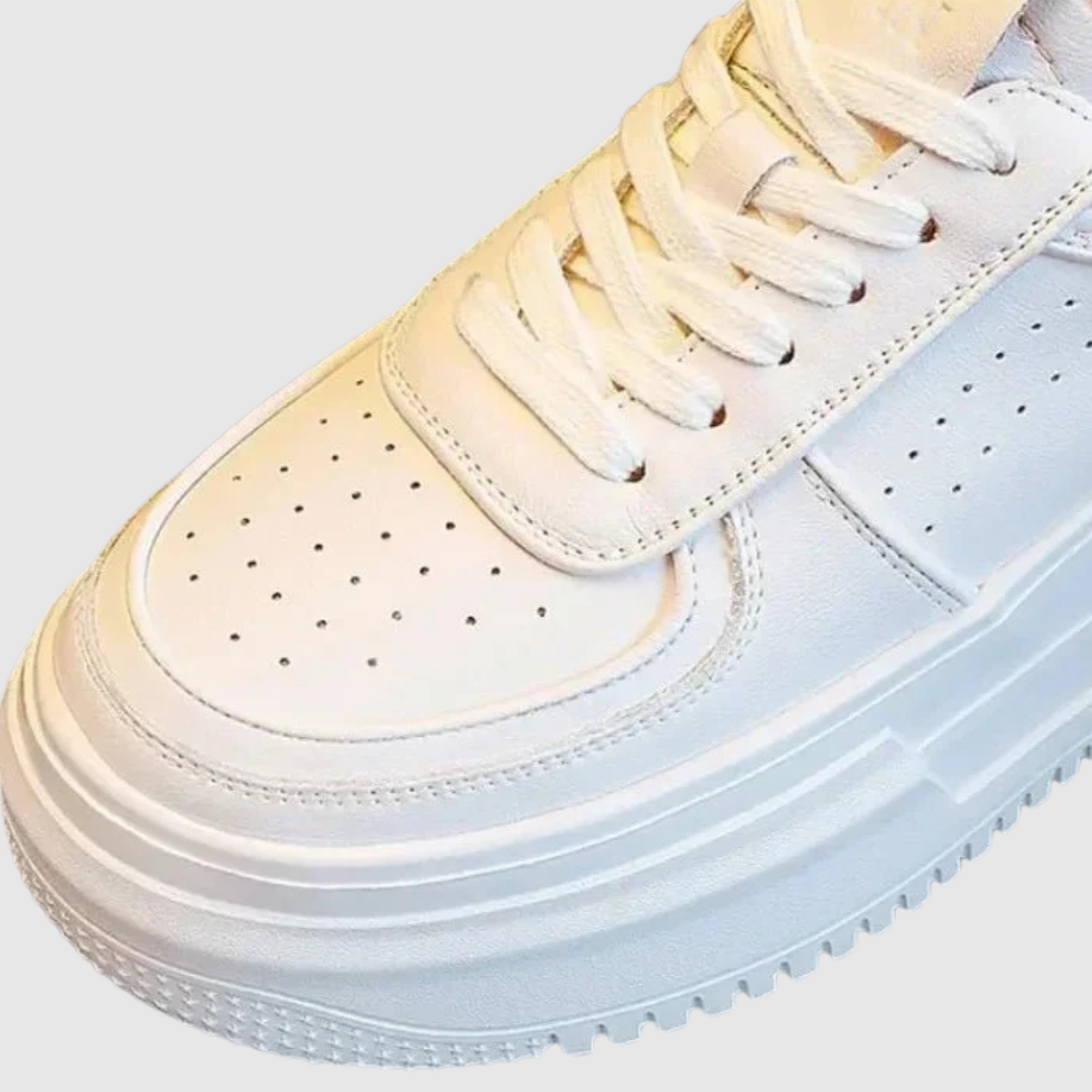 Тези бели маратонки с платформа не само че придават допълнителна височина, но и предлагат свеж, минималистичен вид, който подхожда на всяко облекло – от дънки до рокли.