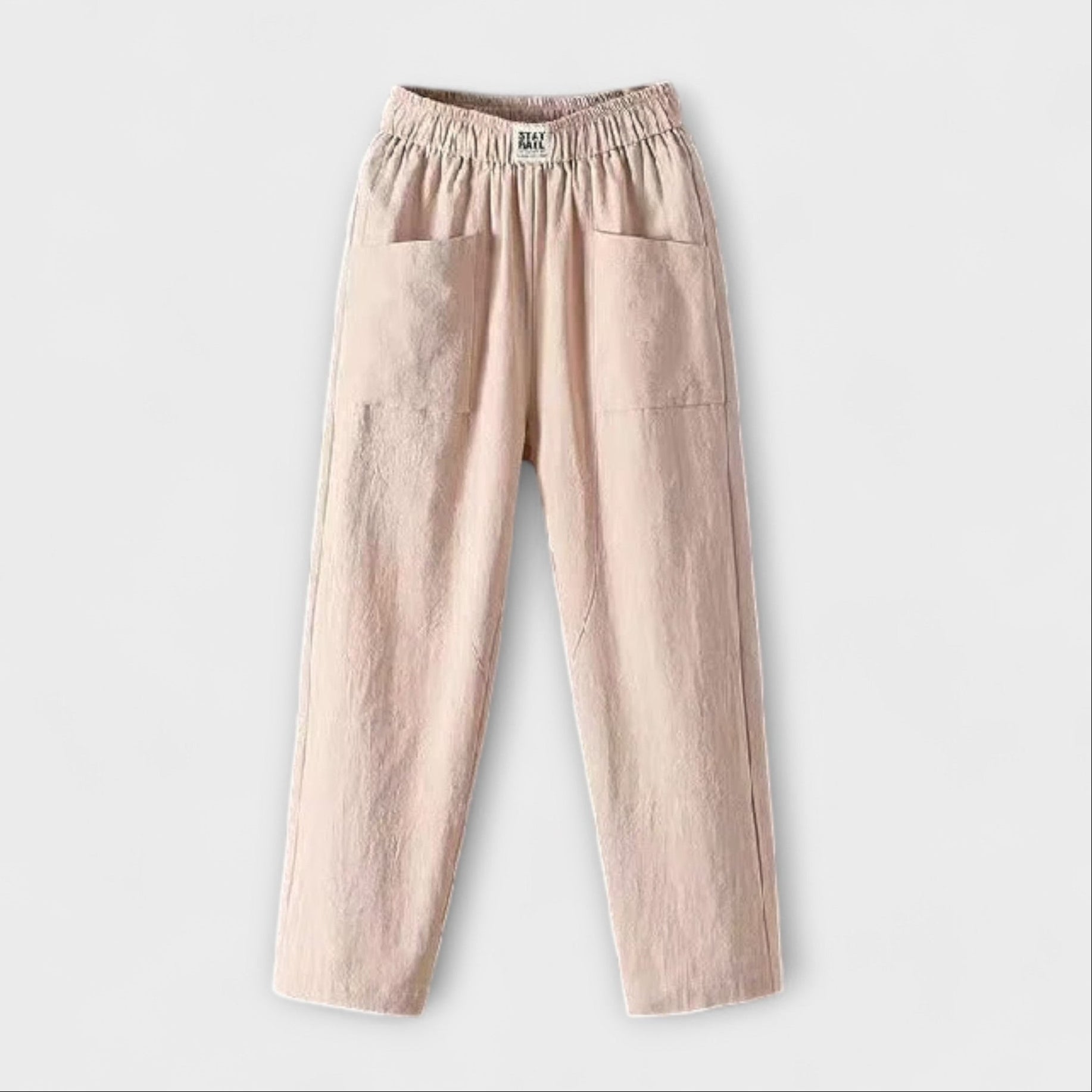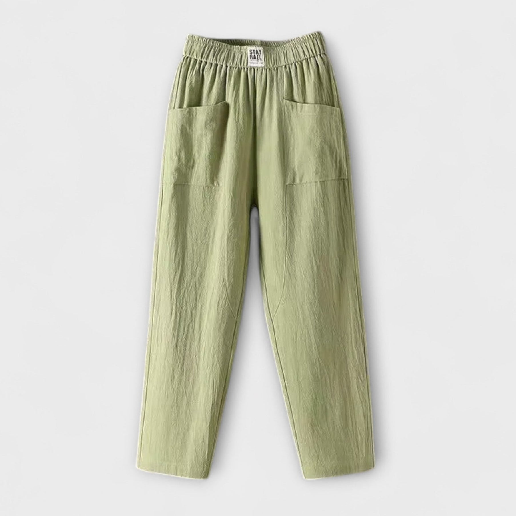 Насладете се на перфектния баланс между свежест и стил с тези ленени панталони. Нехвърлящият им кройка и еластичният талия осигуряват свобода на движение и перфектно прилягане за всякакъв повод.