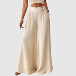 Тези широки панталони съчетават минималистичен дизайн с лек и удобен плат. Те са перфектни както за ежедневна употреба, така и за елегантни поводи. Кройката придава изискан вид, без да се компрометира комфортът.