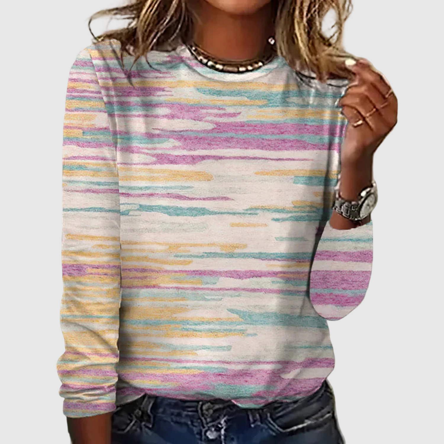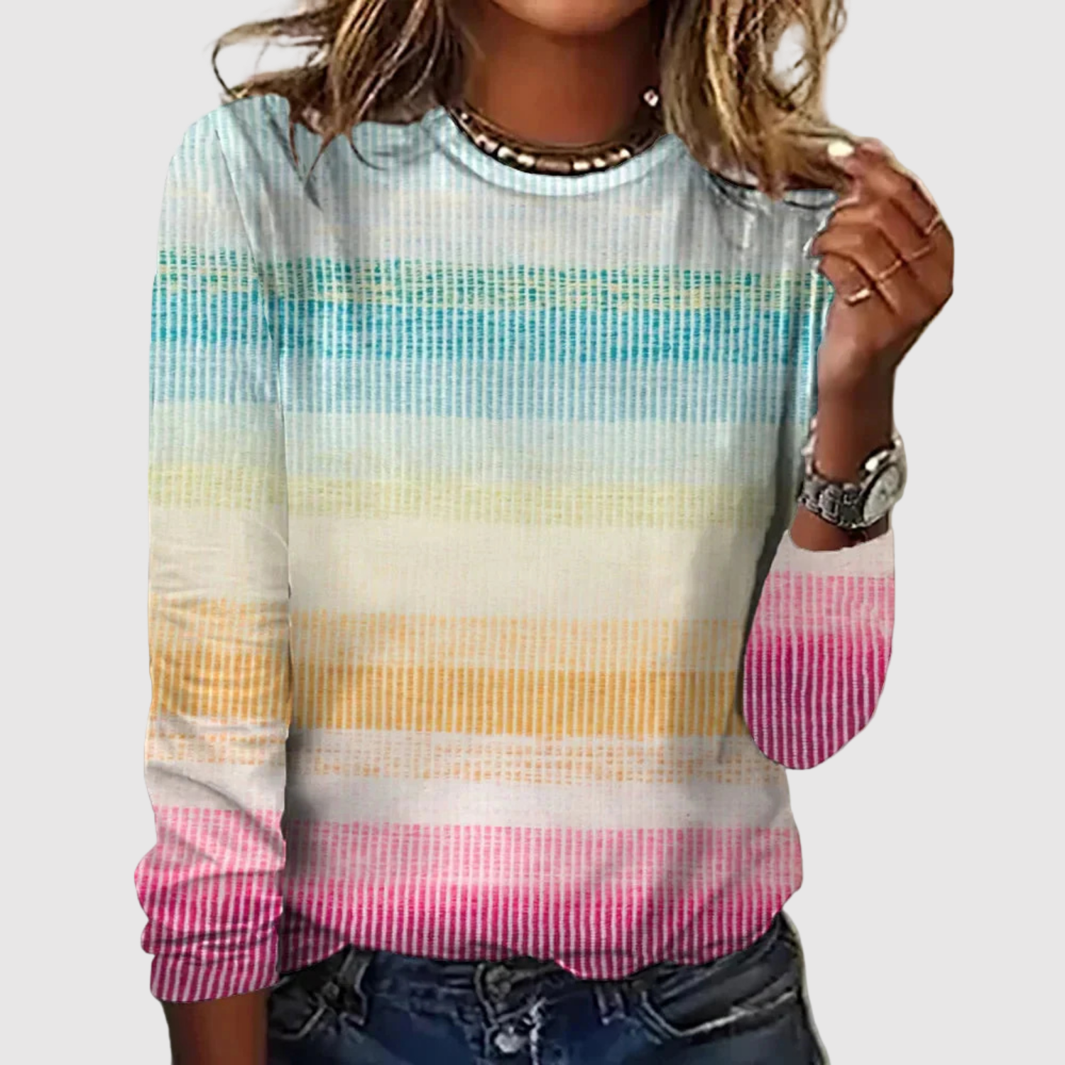 Клара – Пуловер в дъгови цветове и пастелни нюанси