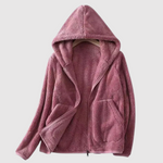 Супер мека флийс якета с качулка, проектирана за комфорт и стил. Перфектна за релаксиращи дни или многослойно облекло в хладни сезони.