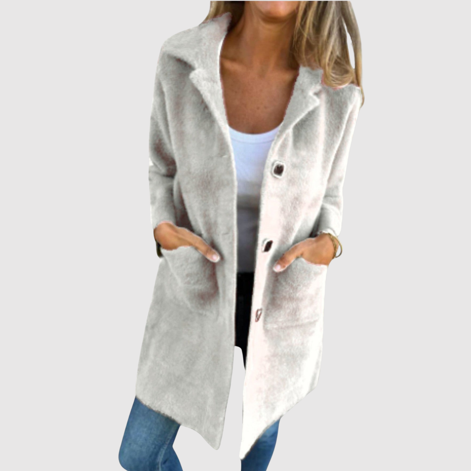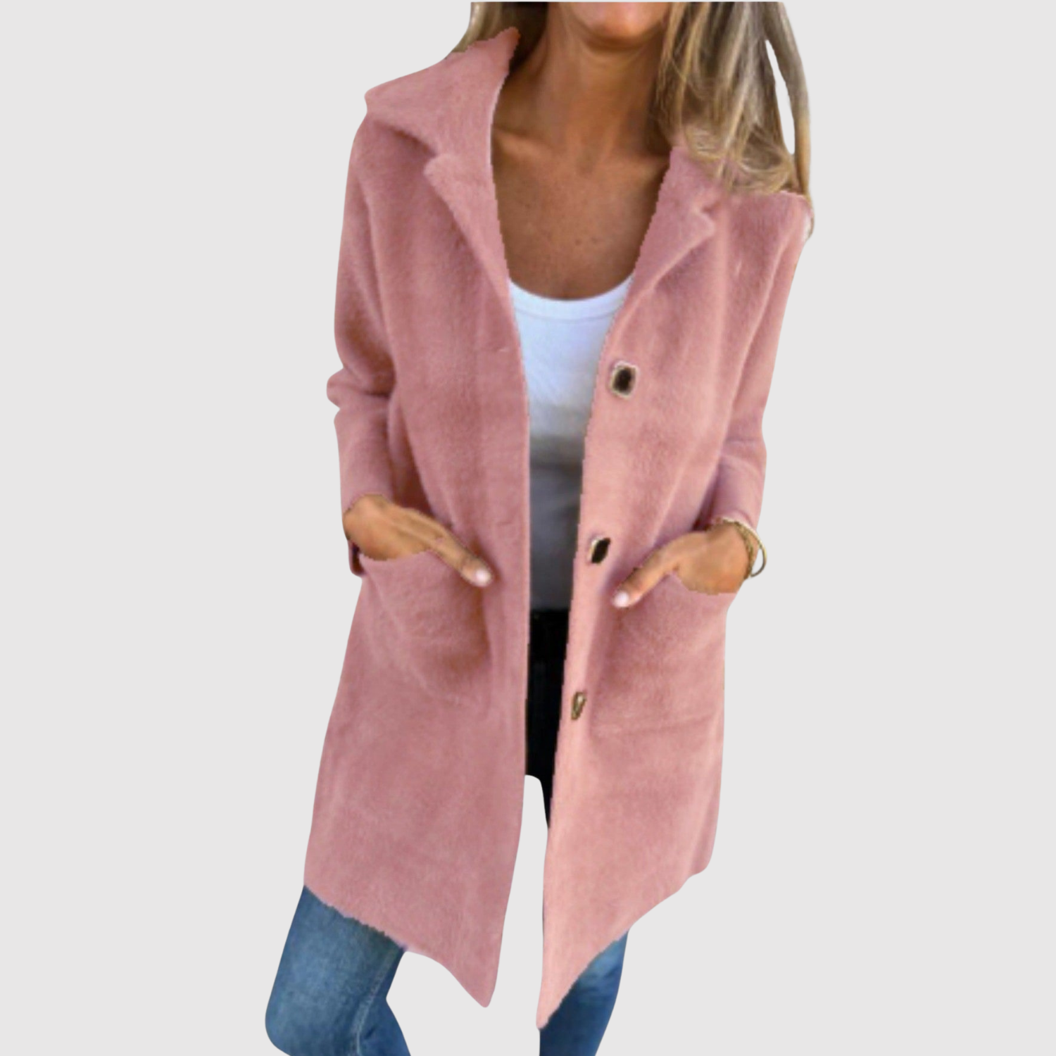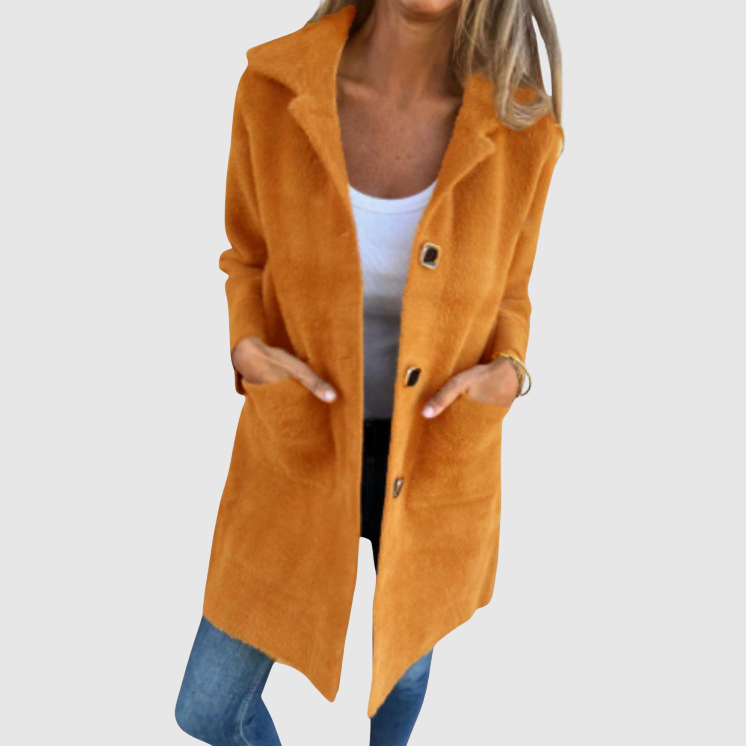 Това дълго палто е елегантен избор за всекидневието. Простият дизайн с копчета и прав силует го прави лесно за комбиниране с различни аутфити. Идеално за преходни периоди, когато искате комфорт, без да правите компромис със стила.