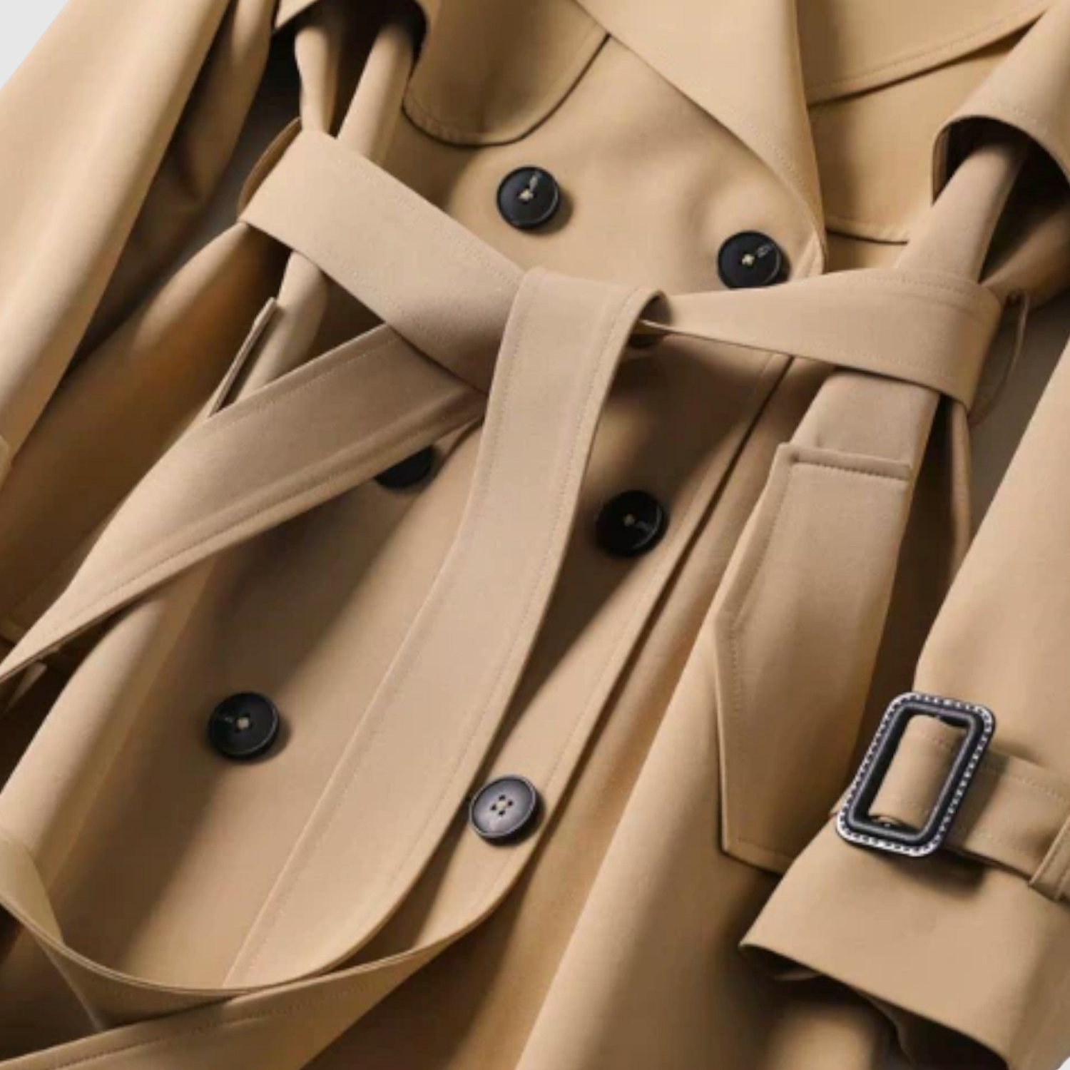 Това дълго палто е иконичен елемент от връхните дрехи, който съчетава елегантност и функционалност. С колан на талията, класическа ревера и лек материал, то е перфектно за ежедневието и по-официални поводи.