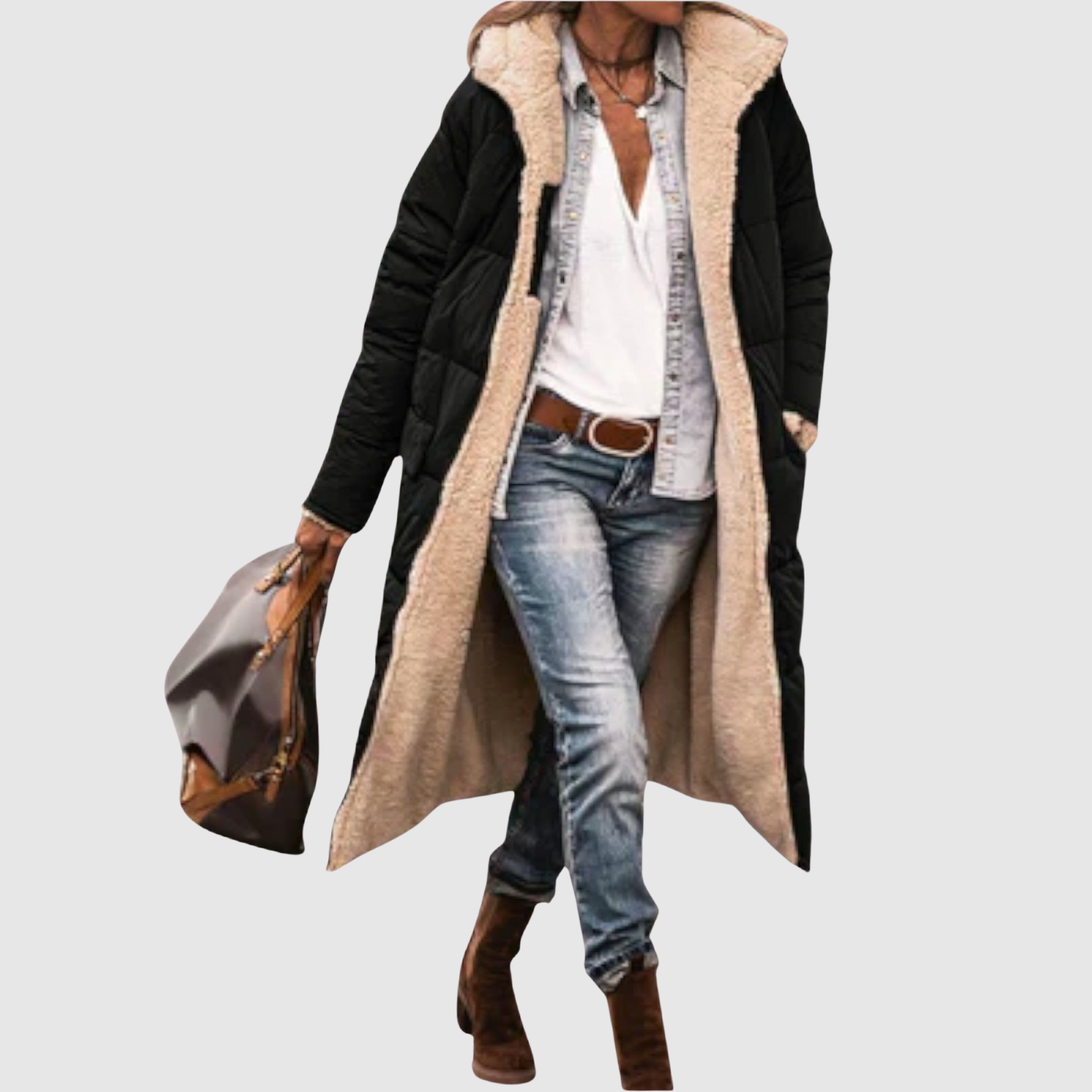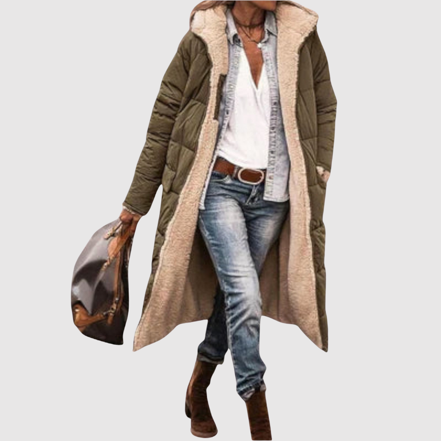 Елена – Дълго полустретно яке с пухено вътрешно покритие