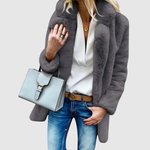 Това късо палто от изкуствена козина е перфектно за комбиниране на стил и комфорт. То има модерен кройка, която придава изискан вид, докато меката текстура те държи топло в хладни дни. Идеално е както за ежедневна употреба, така и за по-елегантни поводи.