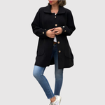 Това късо палто е безвременен избор за вашия гардероб. С простия си силует, класическо закопчаване с копчета и лек материал, то е перфектно за преходните сезони. Лесно може да се съчетае както с дънки за неформален вид, така и по-елегантно за офис.
