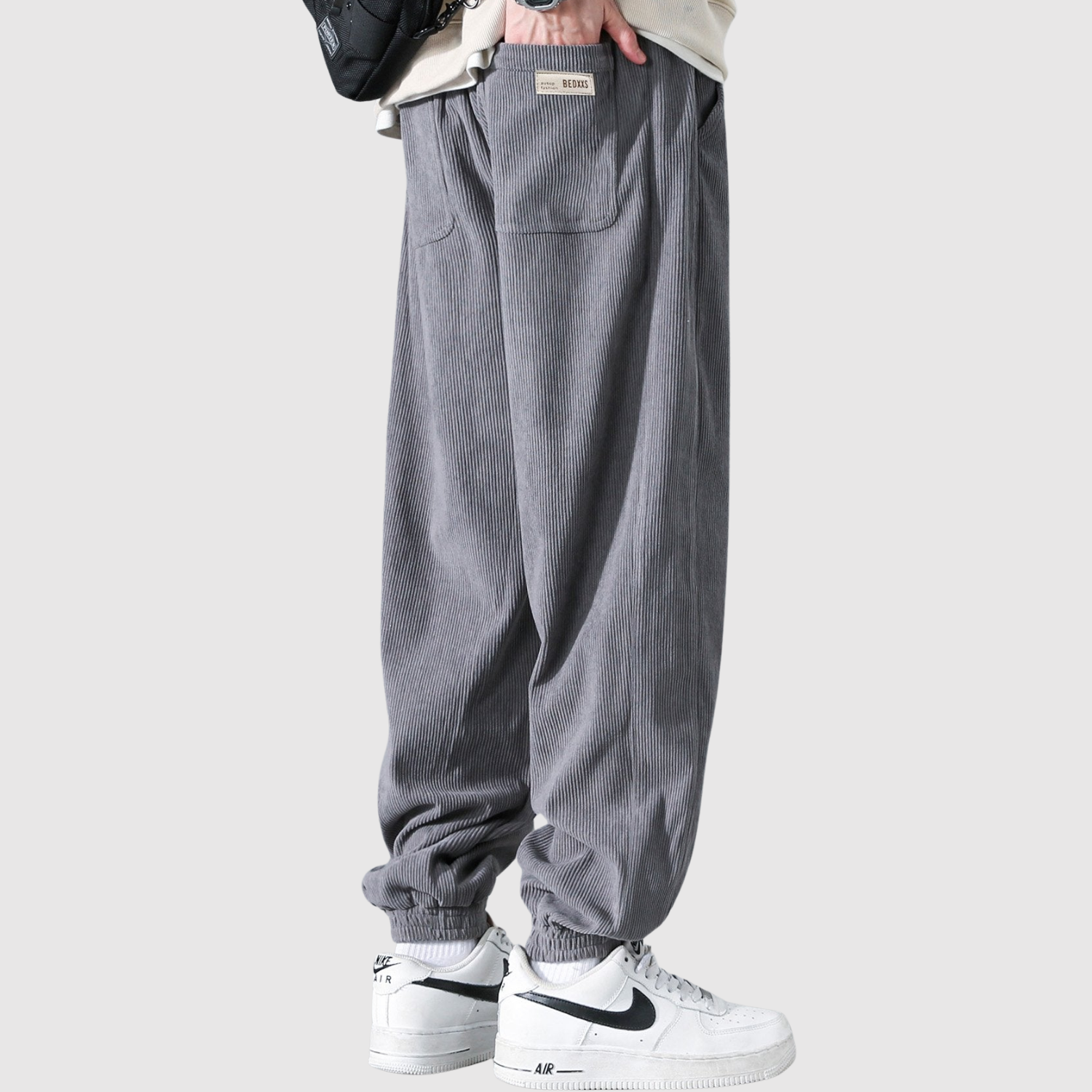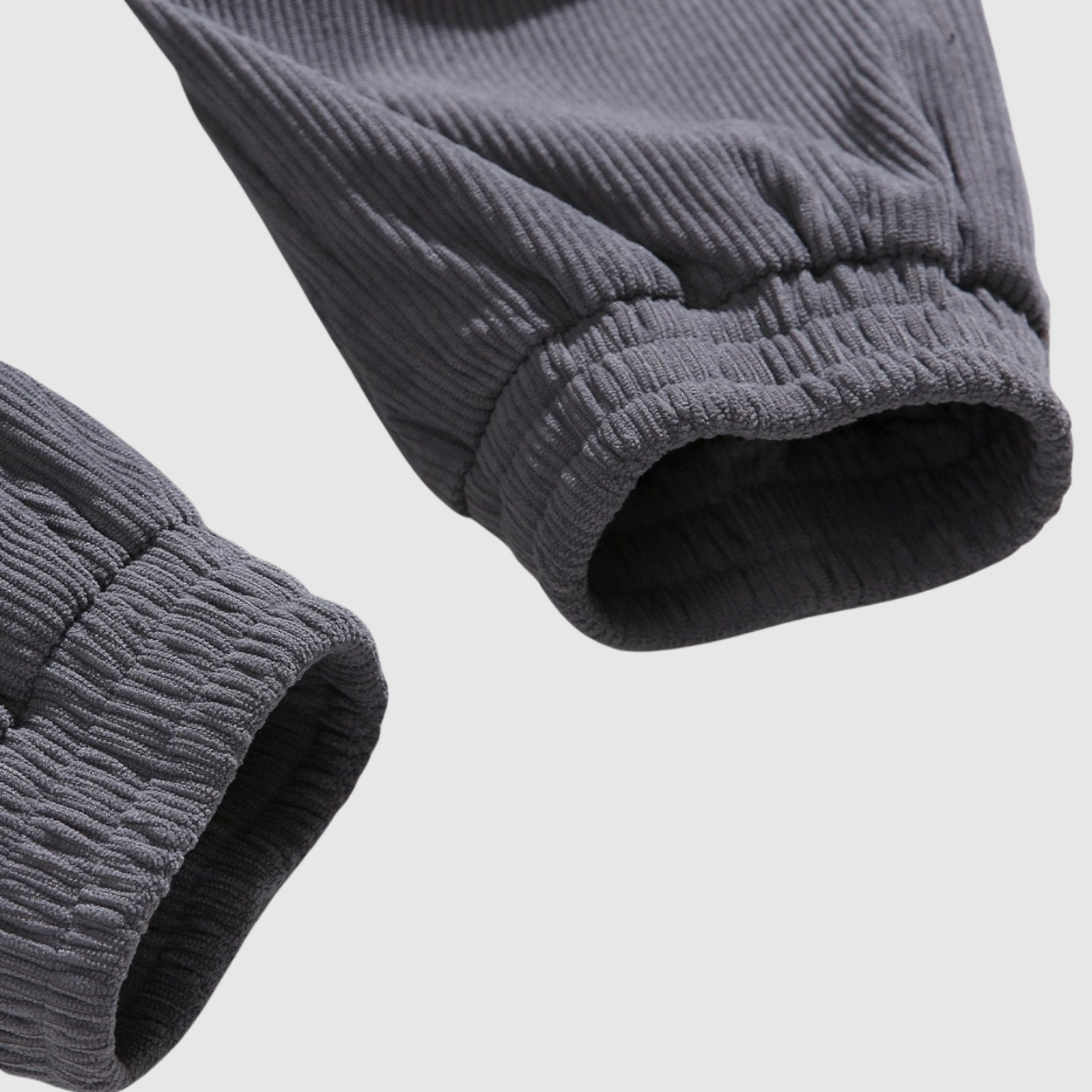 Тези джогъри са изработени от мека рибена материя, която предлага както релаксиран, така и стилен вид. С еластична талия и просторна кройка, те са перфектни за ежедневието или неформални активности.