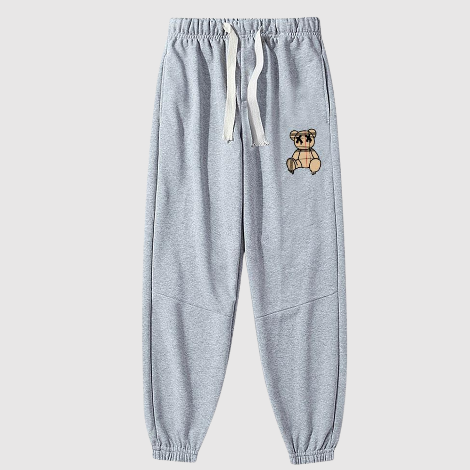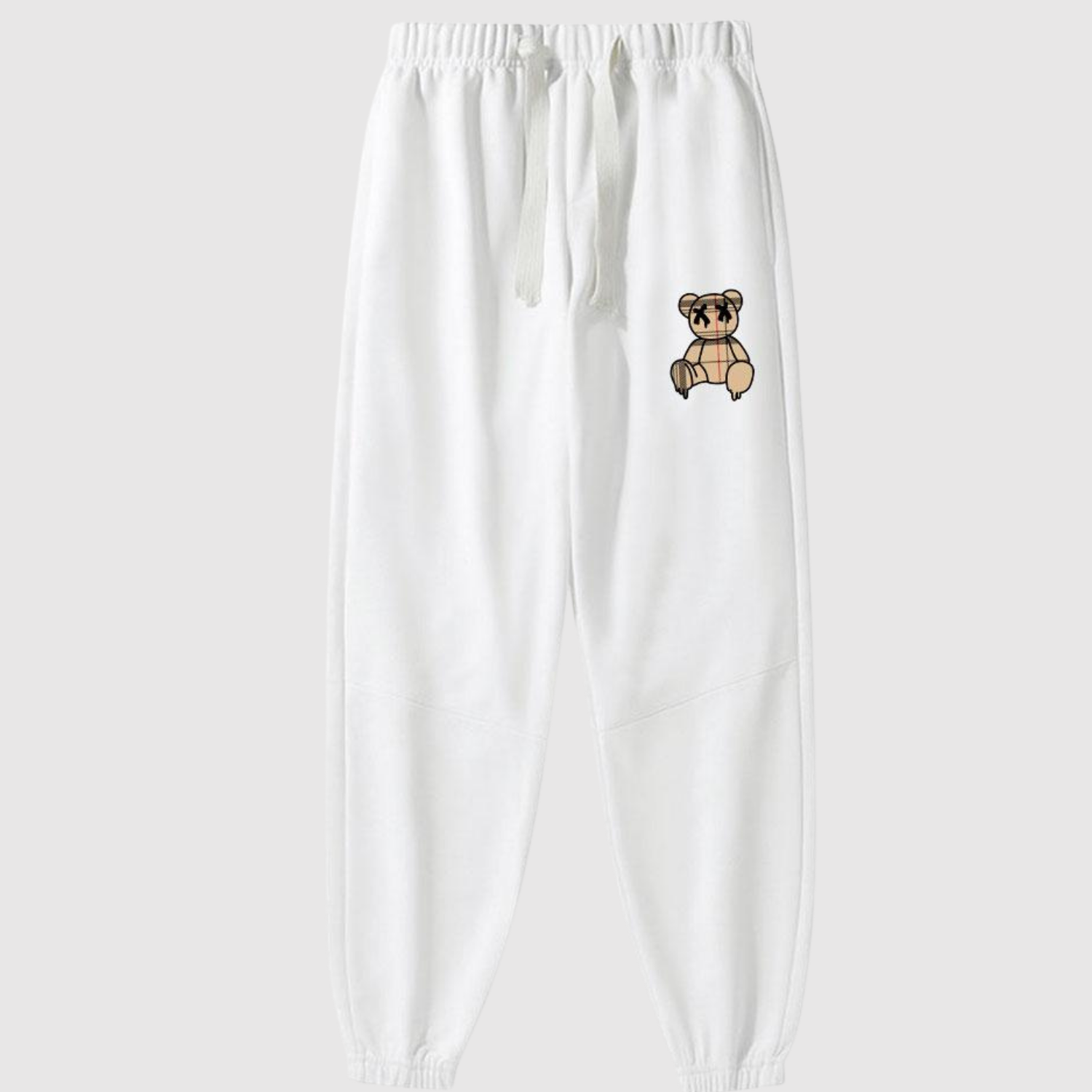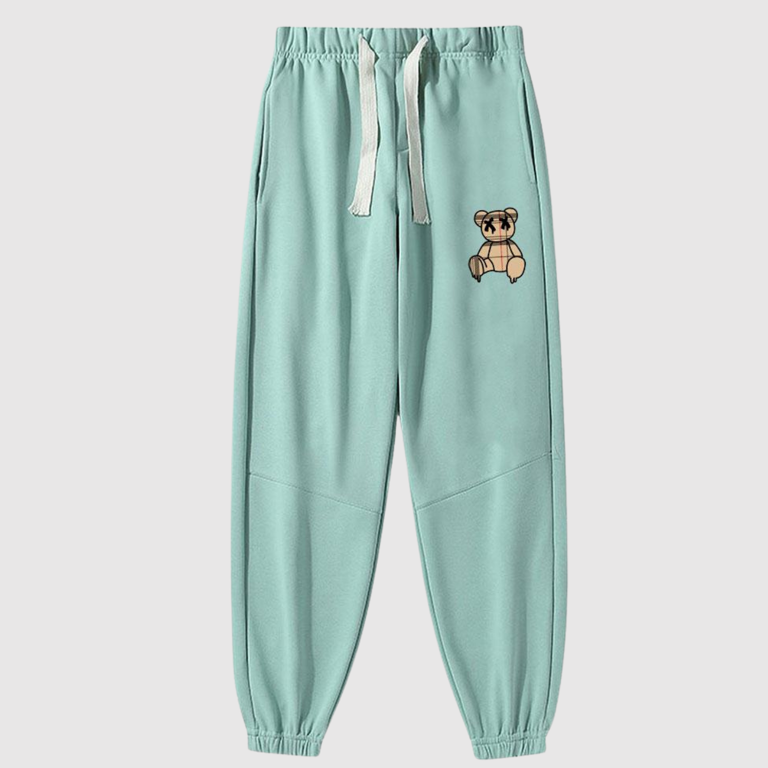 Тези джогери комбинират класически комфорт с игрив обрат. Меката материя и еластичният колан осигуряват удобно прилягане, докато бродираният мечешки мотив добавя уникален и стилен вид.