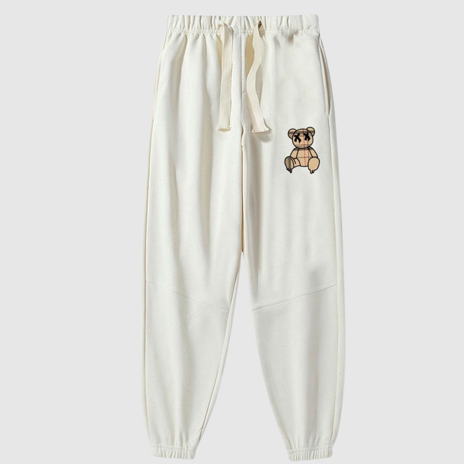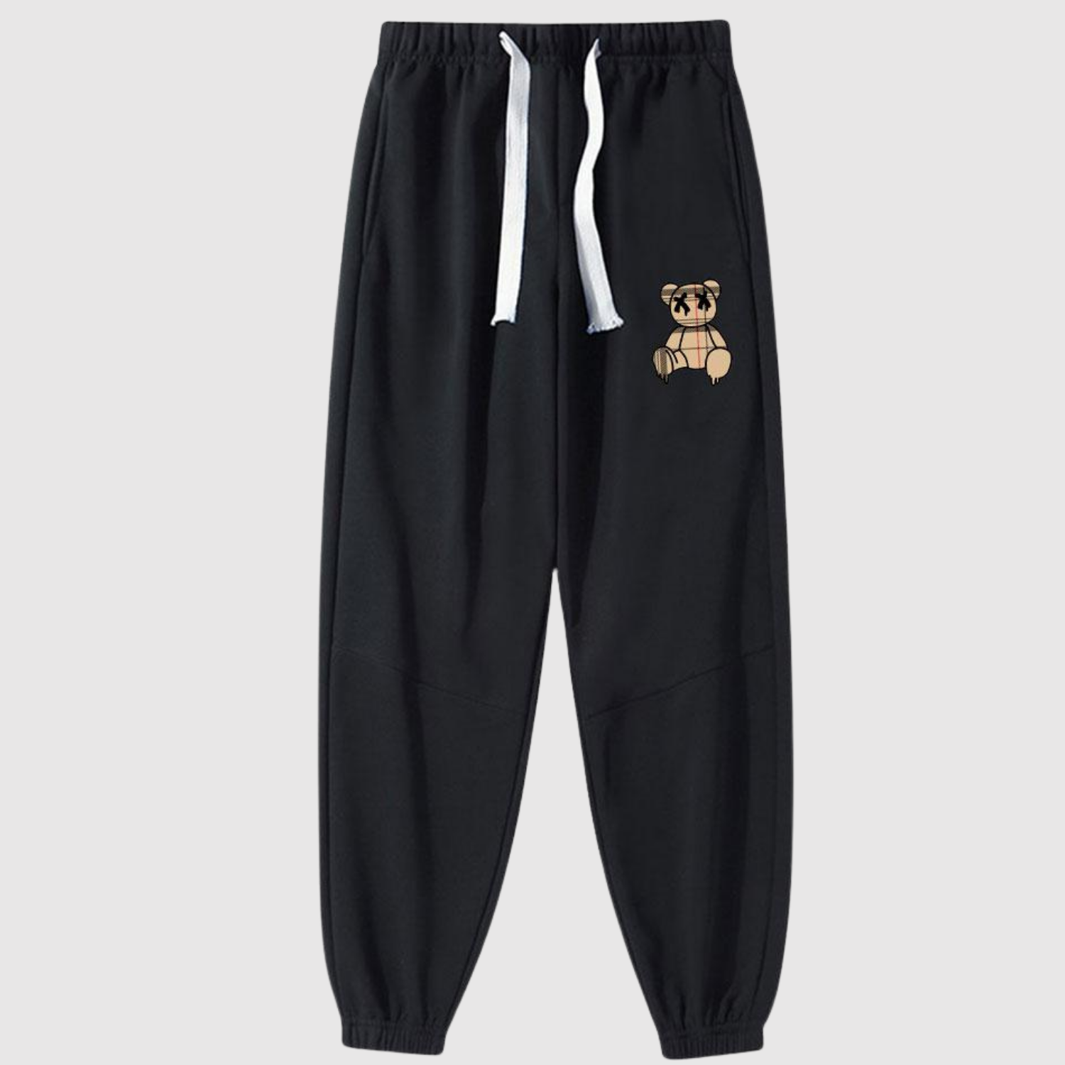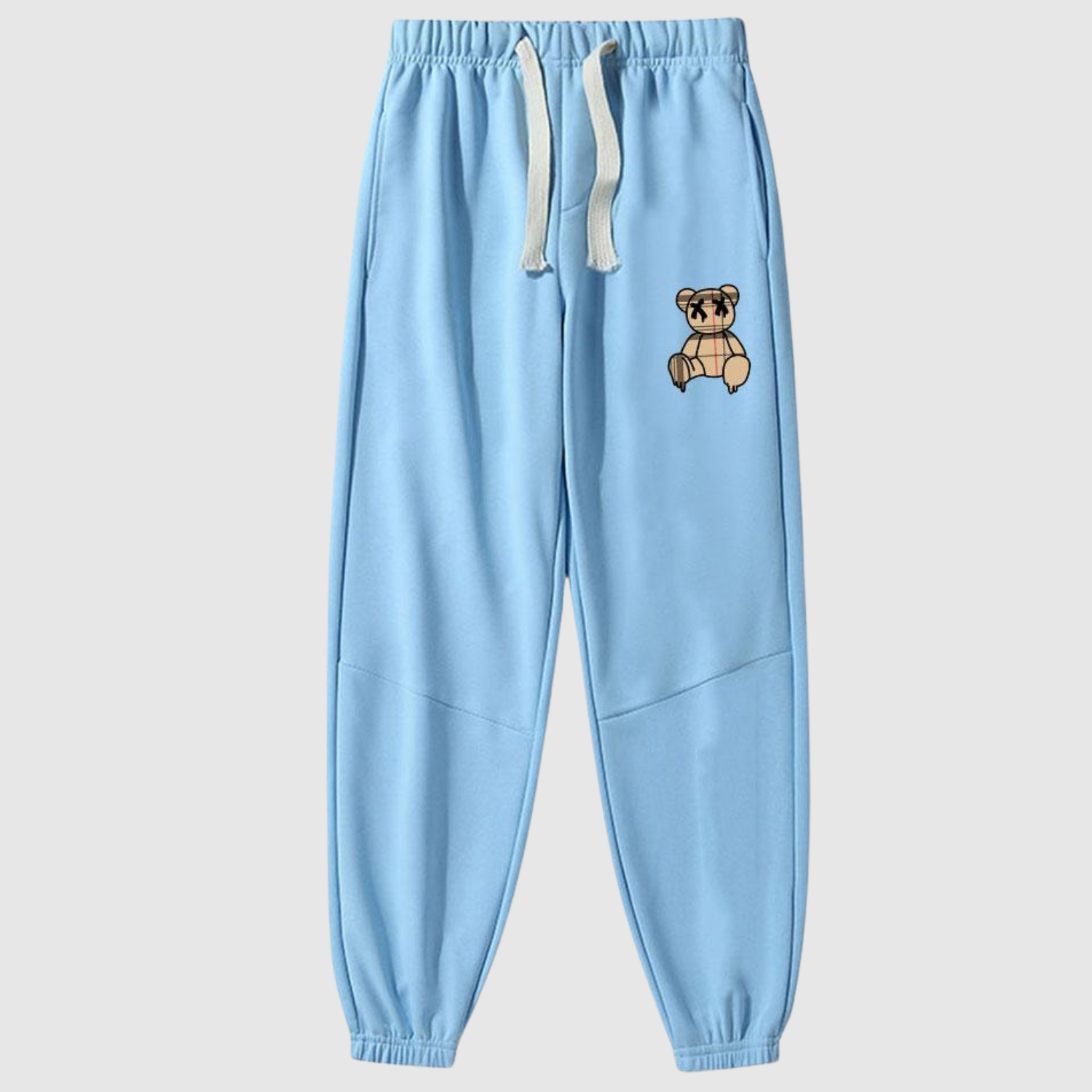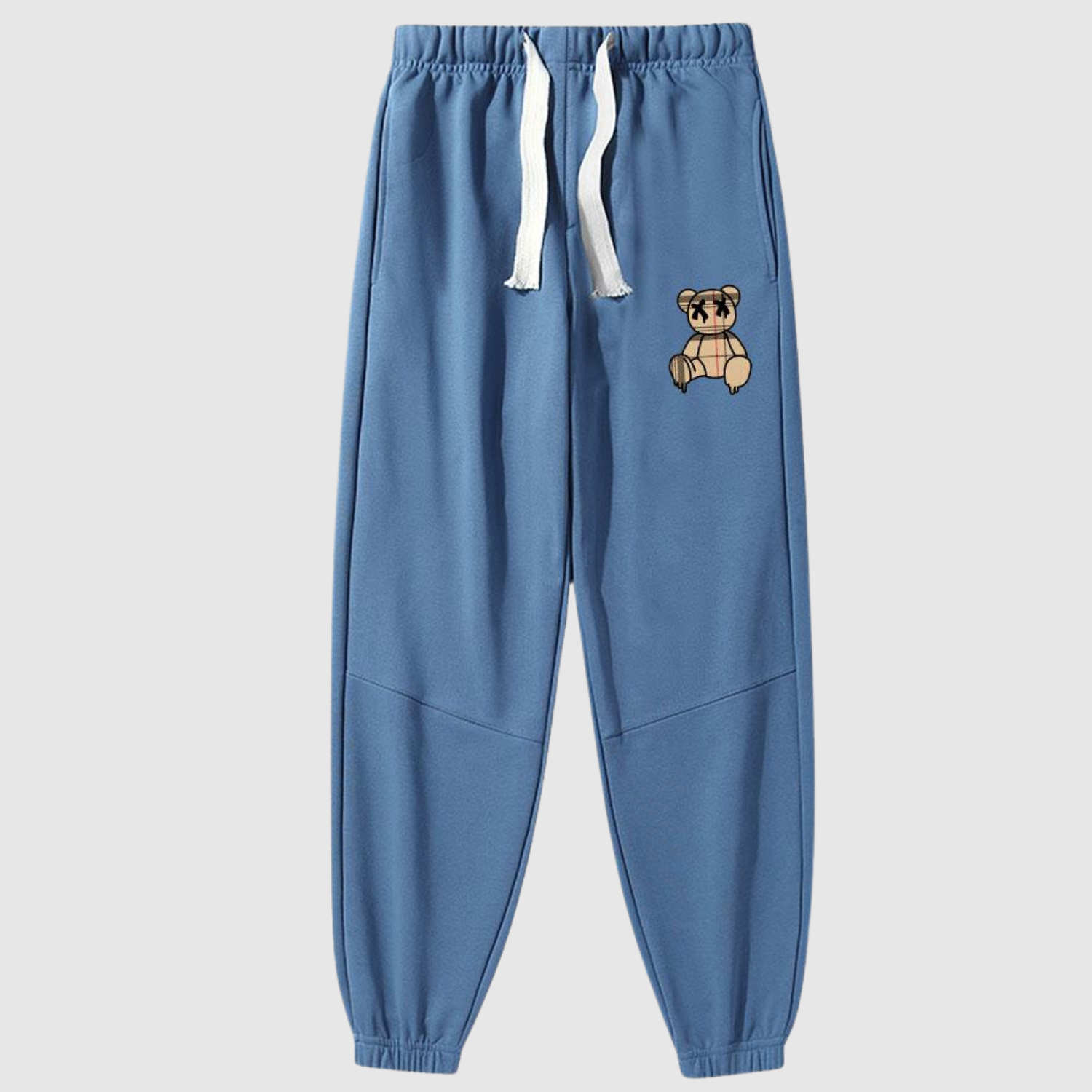 Тези джогери комбинират класически комфорт с игрив обрат. Меката материя и еластичният колан осигуряват удобно прилягане, докато бродираният мечешки мотив добавя уникален и стилен вид.