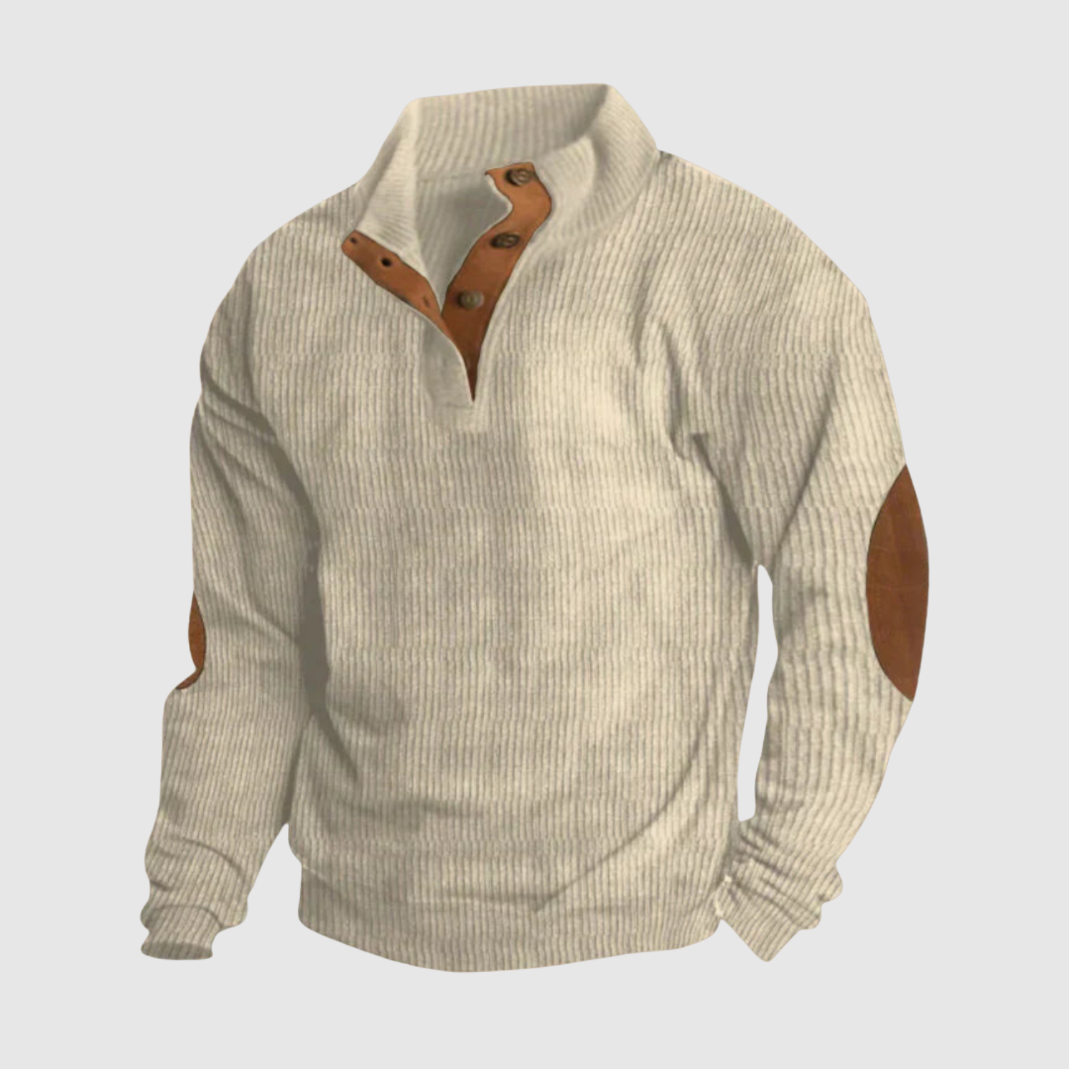 Стилен пуловер за мъже, който комбинира рустикален вид с модерно удобство. Половинният цип придава гъвкав вид, идеален за както за неформални, така и за елегантни аутфити.