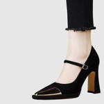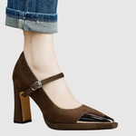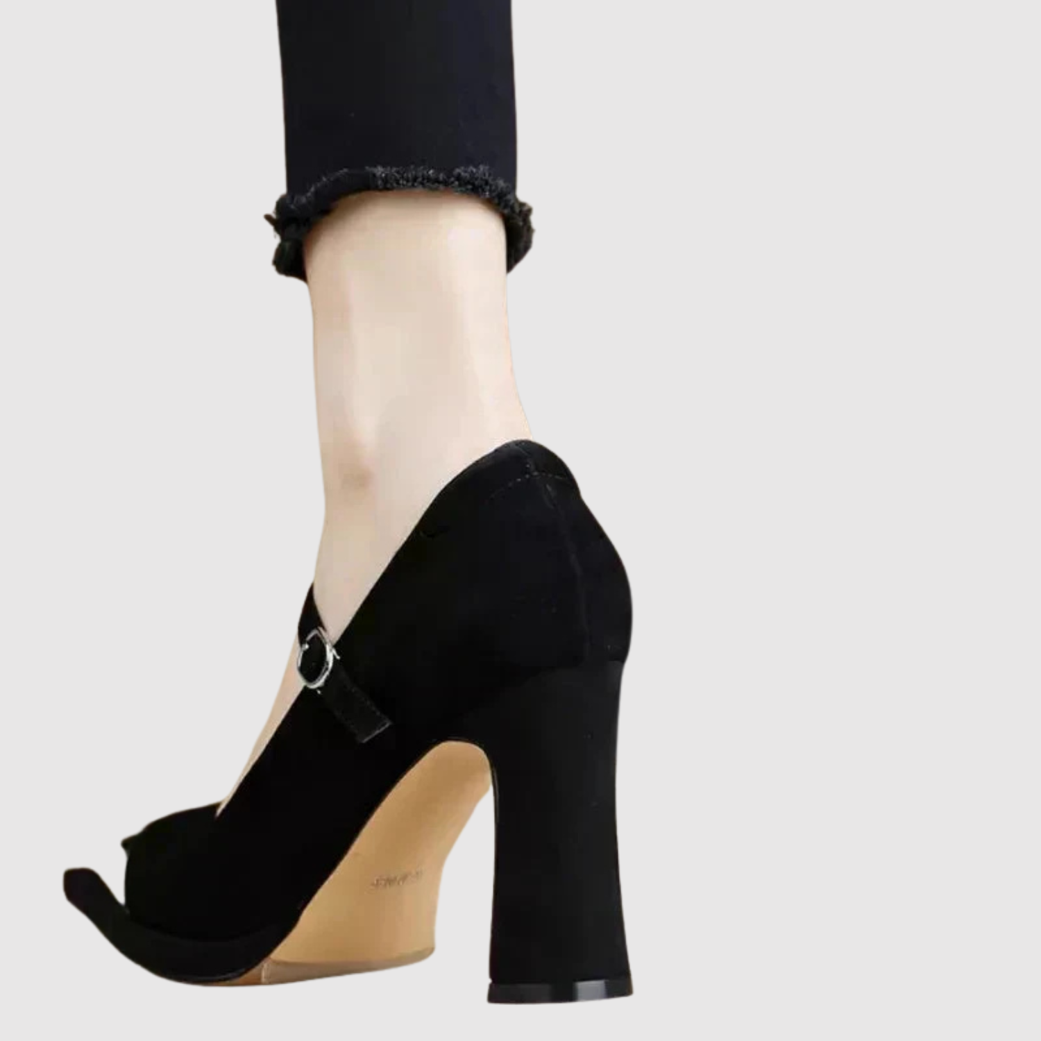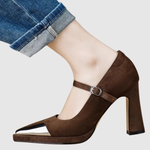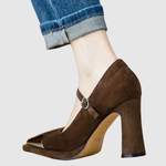 Тези обувки съчетават ретро елегантност и съвременен стил. Изработени от висококачествен велур с блестящ връх и тънка регулируема каишка, те придават женствена грация и комфорт дори при дълго носене. Перфектен избор за офиса, вечерна разходка или специален повод.