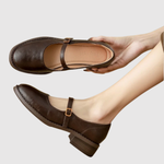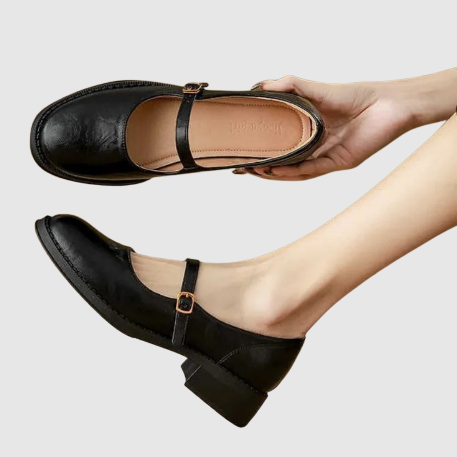 Тези обувки с нисък ток и каишка през глезена предлагат изтънчен ретро стил, който никога не излиза от мода. Изработени от висококачествена еко кожа, те са удобни, стабилни и подходящи както за офиса, така и за ежедневието.