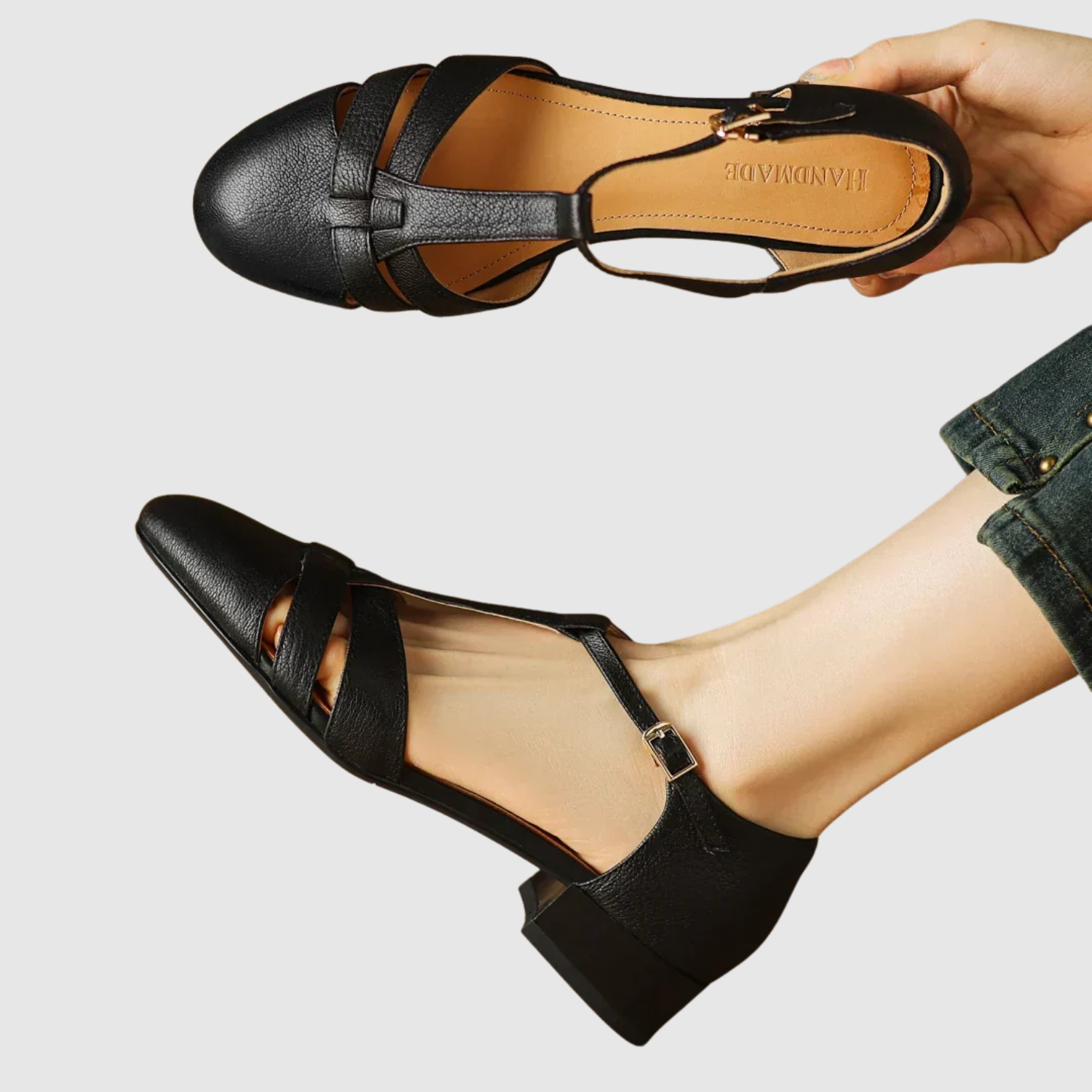 Този модел е вдъхновен от класическите обувки от средата на века и съчетава елегантност с комфорт. Изработени от висококачествена еко кожа, обувките имат елегантна T-образна каишка, стабилен нисък ток и мека вътрешна подплата, която осигурява удобство през целия ден. Подходящи са както за ежедневна визия, така и за по-официални поводи.