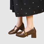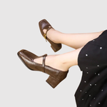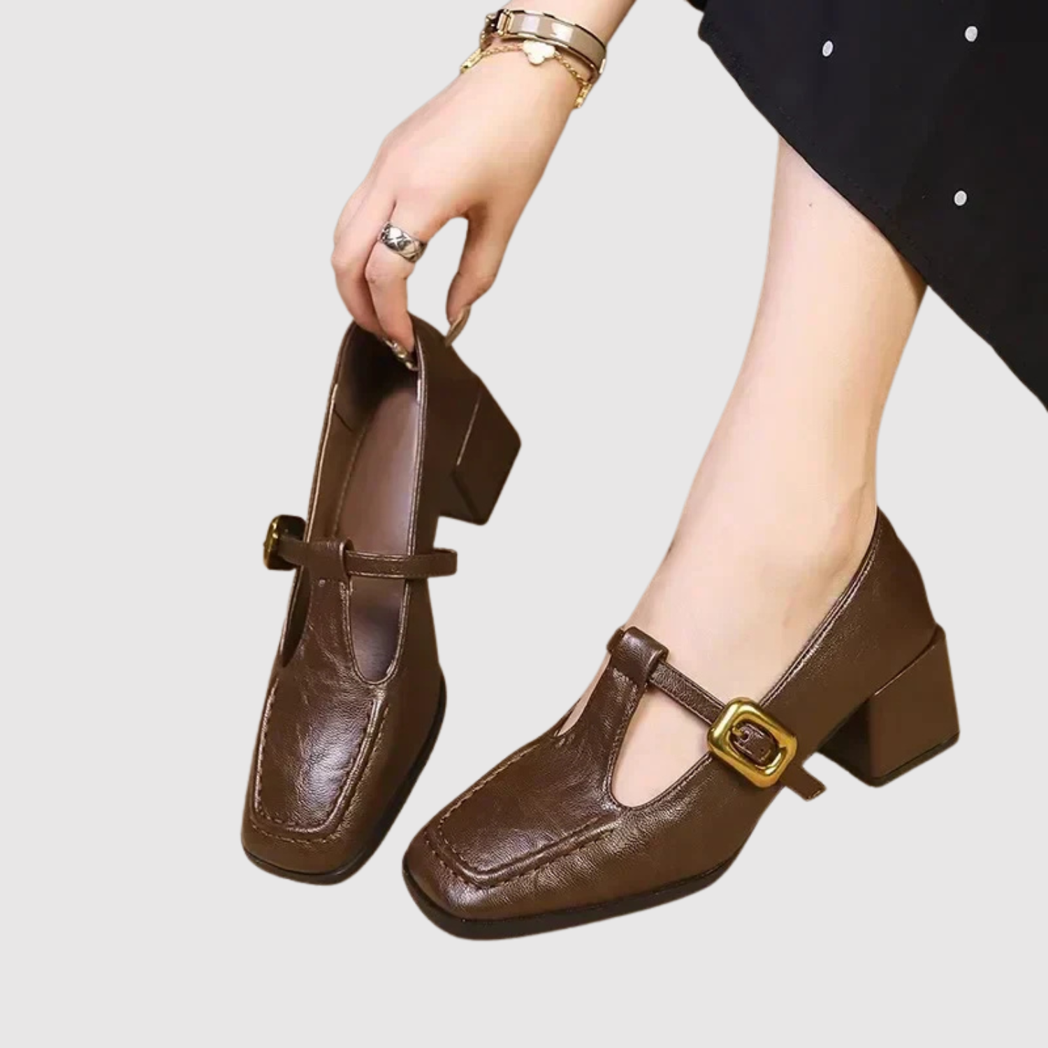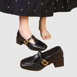 Тези елегантни обувки с нисък ток съчетават винтидж чар и съвременен комфорт. Моделът е изработен от мека еко кожа, украсена с фина катарама и квадратен връх, който придава изискан силует. Подходящи както за ежедневието, така и за специални поводи – обувки, които подчертават женствеността с лекота.