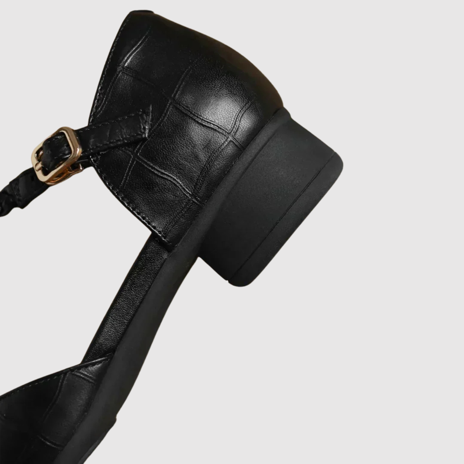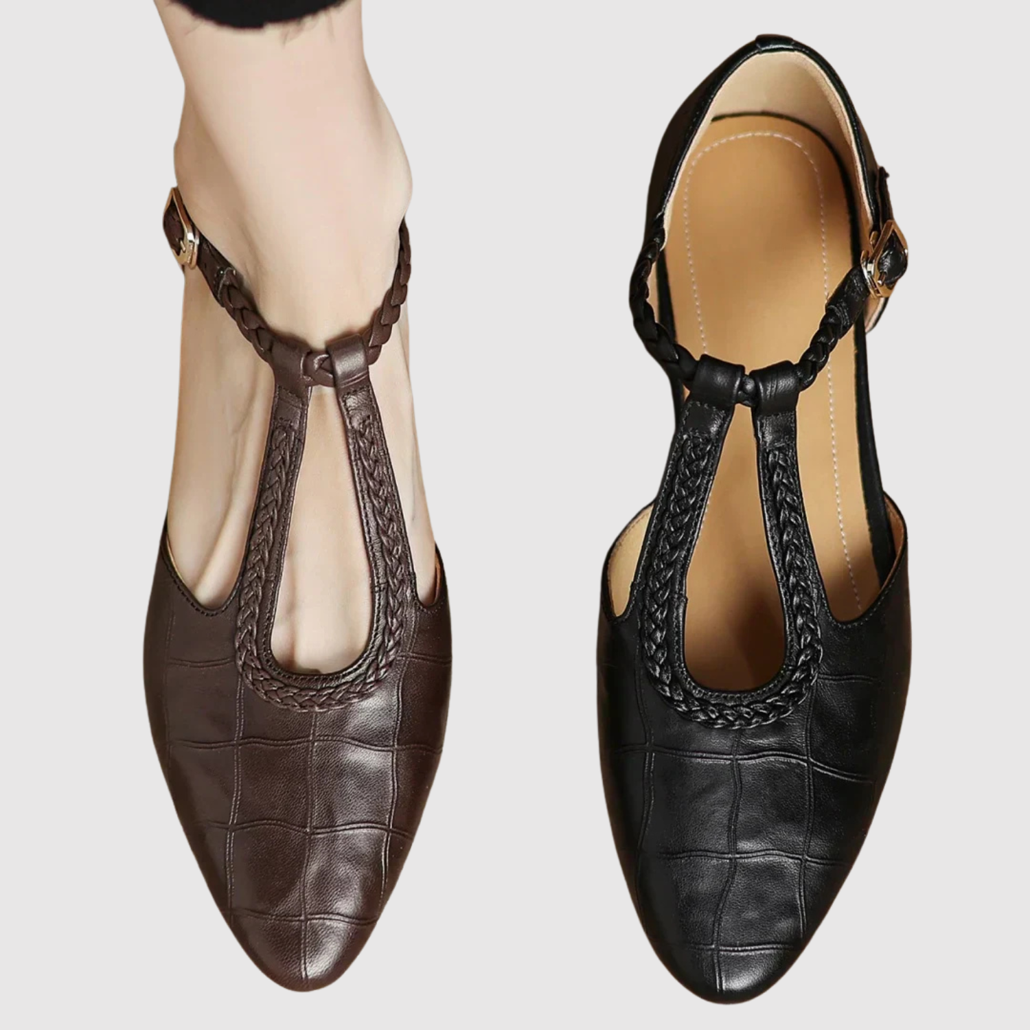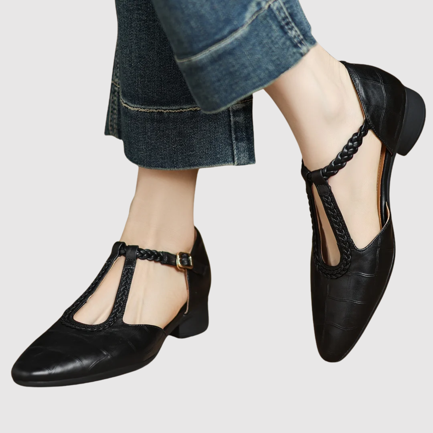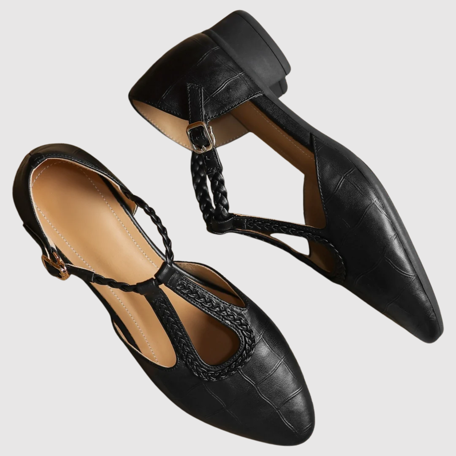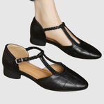 Тези обувки с характерната T-каишка съчетават стил и удобство в перфектна хармония. Изработени от висококачествена еко кожа, те поддържат крака стабилен, а меката подметка осигурява комфорт през целия ден. Идеални са както за офиса, така и за ежедневна визия с нотка изисканост.