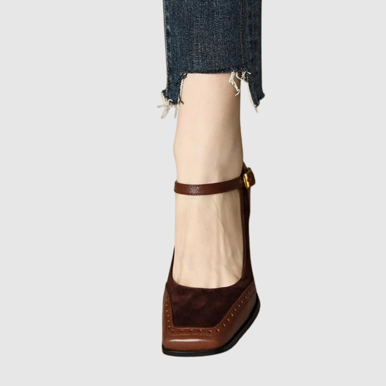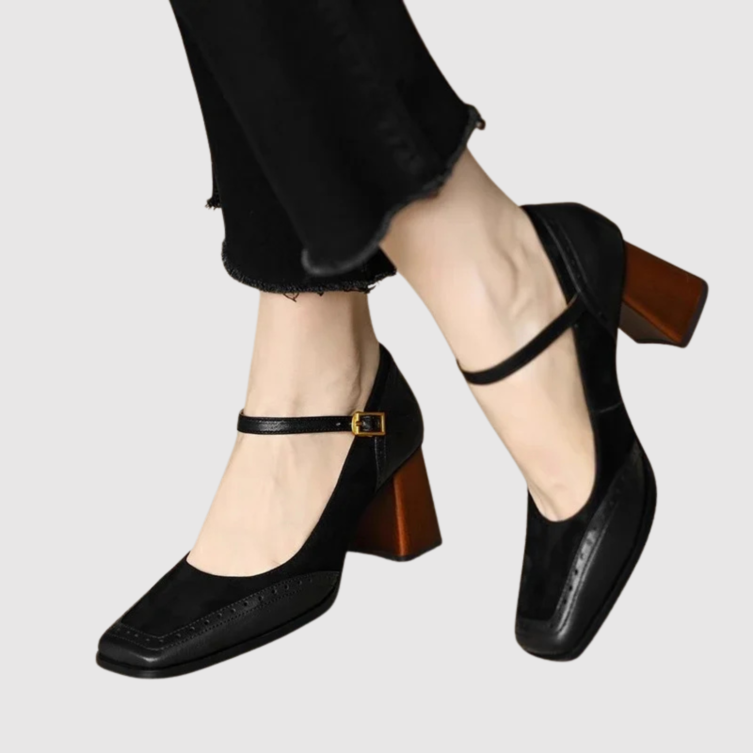 Тези елегантни обувки с квадратен връх и регулируема каишка комбинират ретро чар и съвременен комфорт. Изработени от висококачествена еко кожа, те са меки, стабилни и удобни за целодневно носене. Идеални за офиса, вечерно излизане или стилна ежедневна визия.