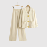 Този гащеризон комбинира минималистичен дизайн с луксозни детайли. Изразителните златни копчета добавят софистициран акцент, докато комфортната кройка прави комплекта идеален както за офис, така и за вечери навън. Задължителен елемент за съвременния гардероб.