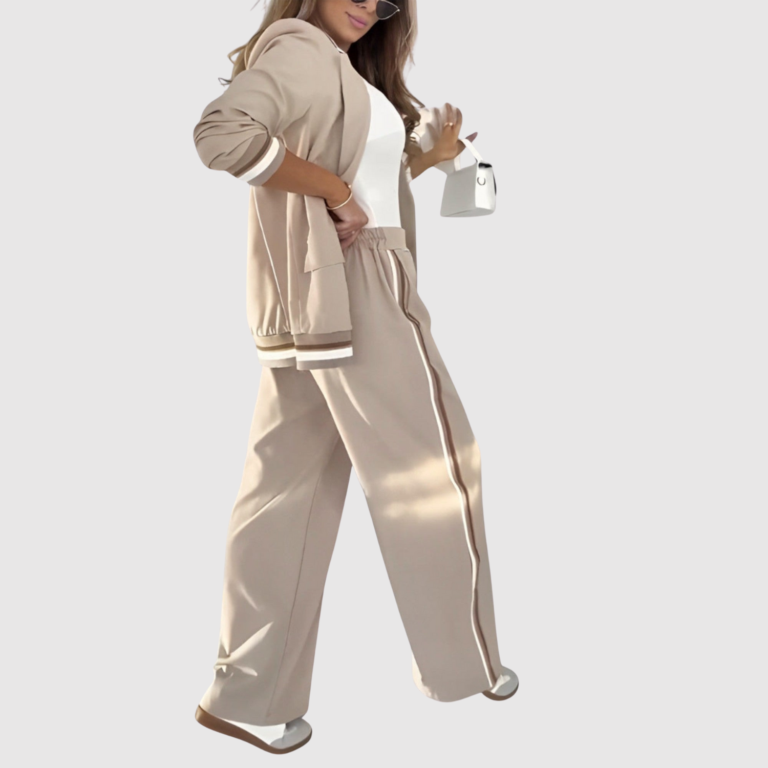 Този гащеризон е проектиран да обедини стил и комфорт в един вид. С леката си материя и спортни линии е перфектен за както за спокойни делници, така и за стилни вечери. Универсално допълнение към гардероба, което придава изтънчен, но неформален вид.