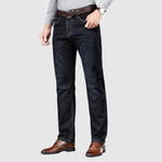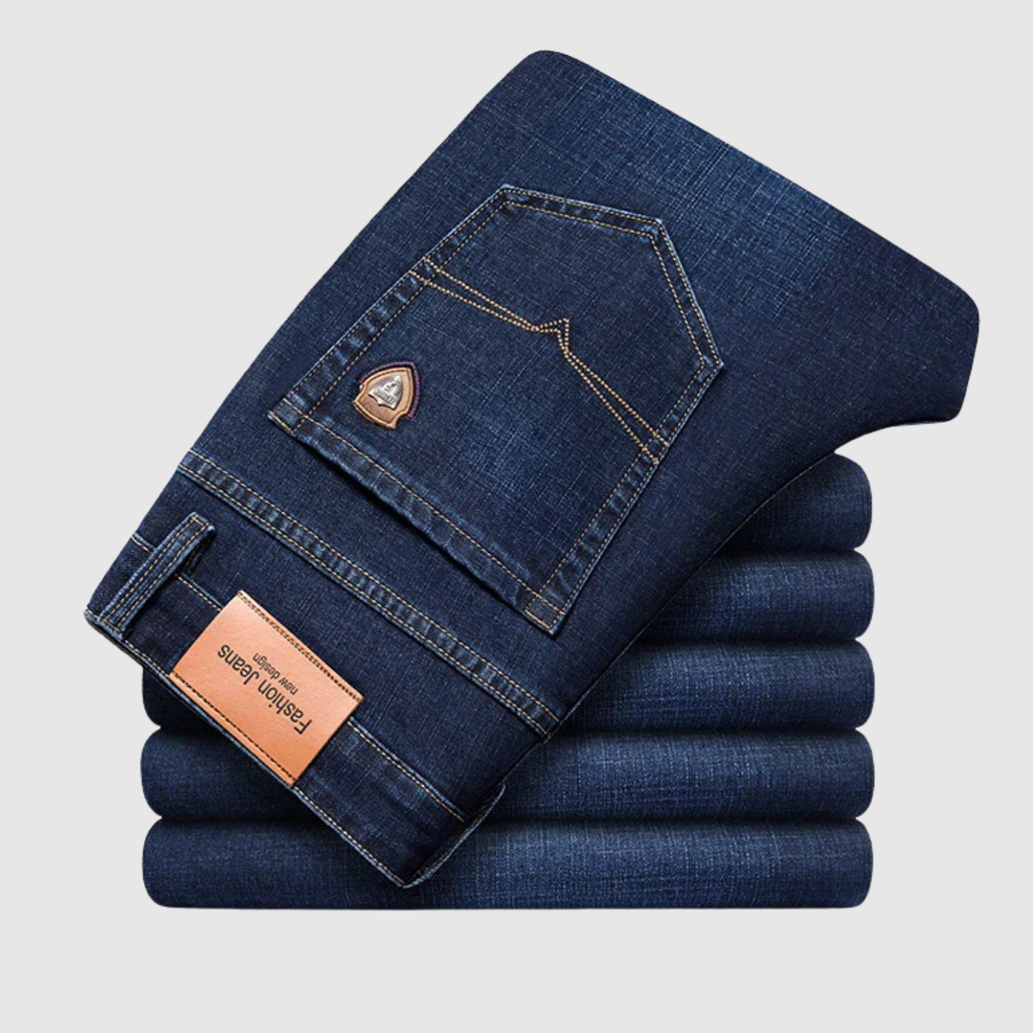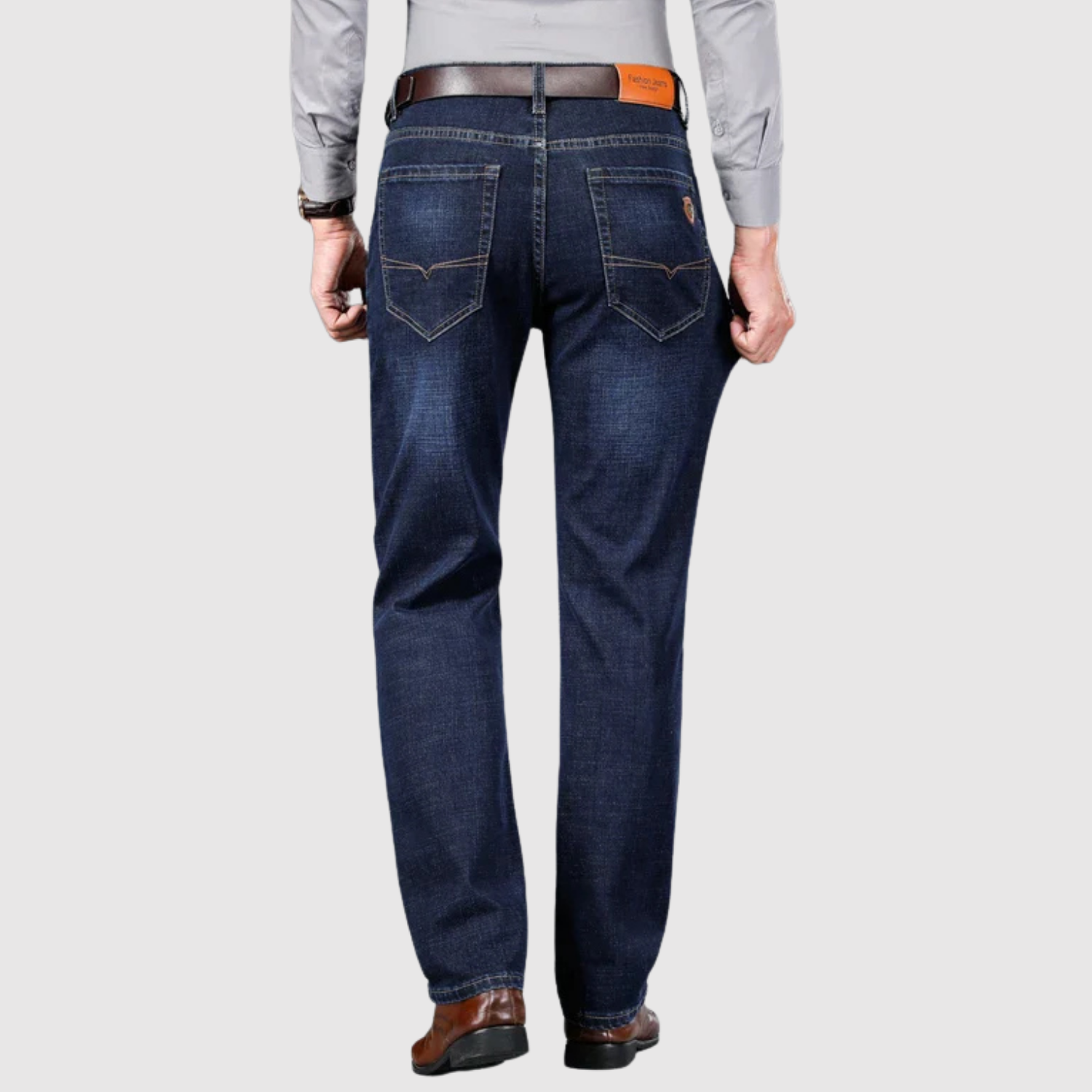 Тези класически прави дънки са изработени от дишащ памучен деним с еластан за допълнителна свобода на движение. Дискретното пране и подсилените шевове осигуряват издръжливост, докато кройката придава чист и универсален вид.