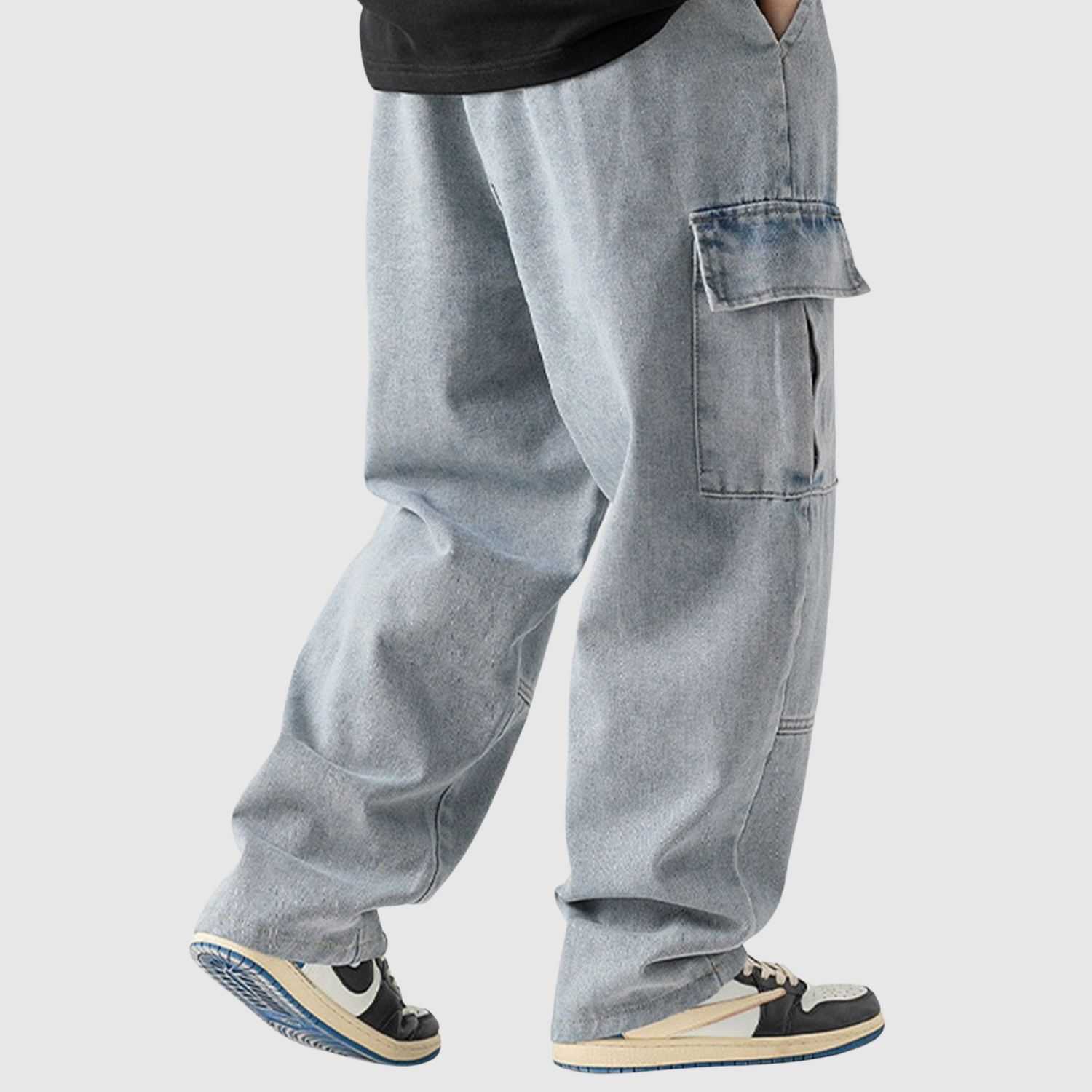 Тези карго дънки комбинират практични детайли с модерен уличен стил. Еластичната талия и правият крачол осигуряват максимален комфорт, докато обемните джобове добавят функционалност и модерен вид.