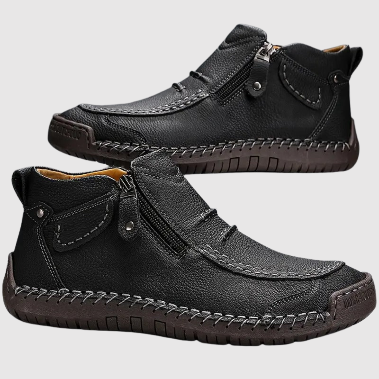 Тези мъжки ботуши комбинират модерен дизайн с практични детайли, което ги прави перфектни за ежедневна употреба и специални поводи. Здравата подметка и меката вътрешност осигуряват подкрепа и комфорт през целия ден. Стилна обувка, която подхожда на всяка мъжка гардероб.