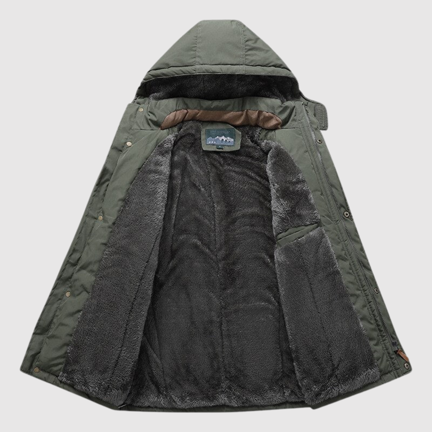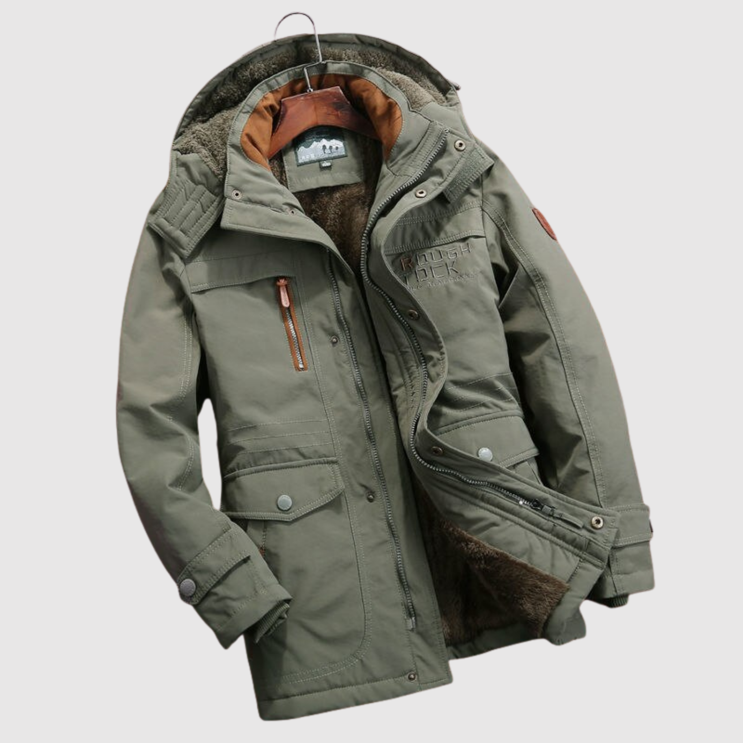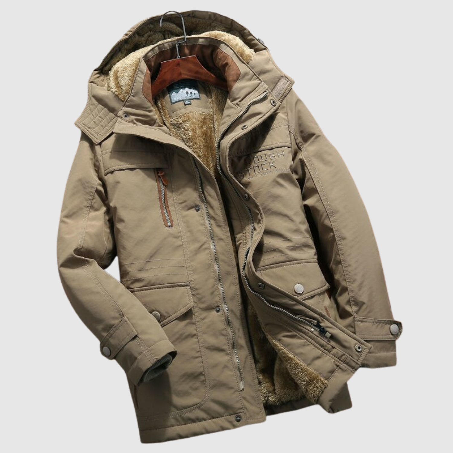 Практична зимна якета с изолирана вътрешност и регулируема качулка, която предлага оптимална защита срещу студ и вятър. Многото джобове съчетават функционалност с груб и модерен вид. Перфектна за ежедневна употреба и дейности на открито през студените месеци.