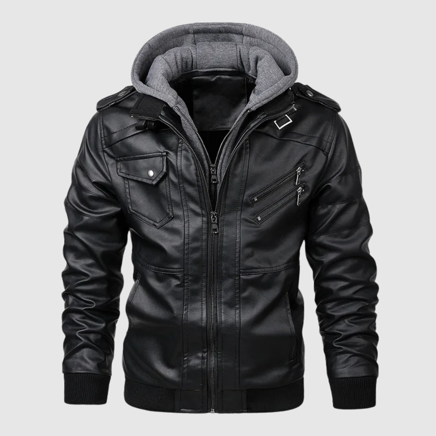 Бомбер яке с кожен вид и практична качулка, което комбинира комфорт и градски стил. Перфектно за ежедневието или за релаксирания вид вечер – универсален избор за вашия гардероб.