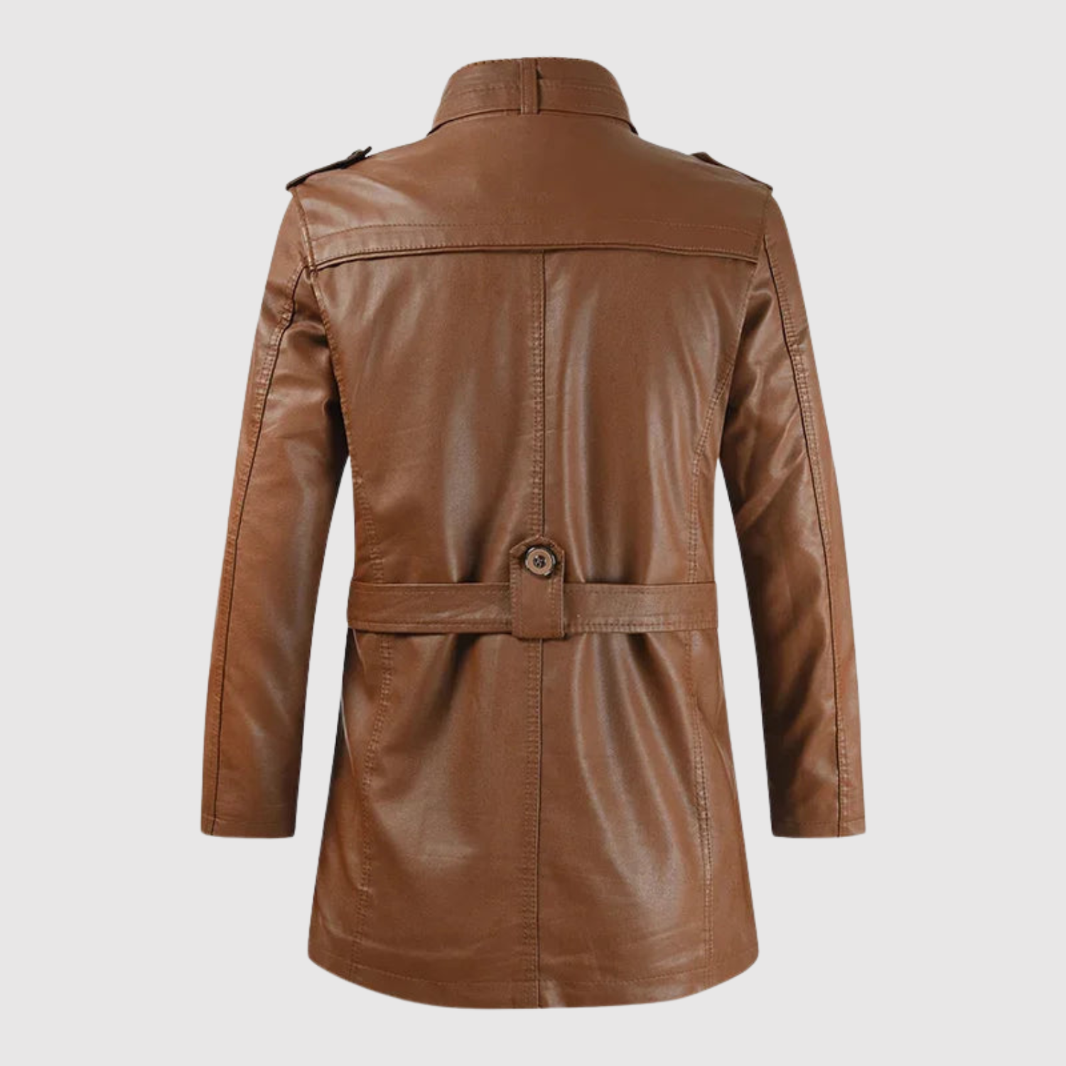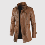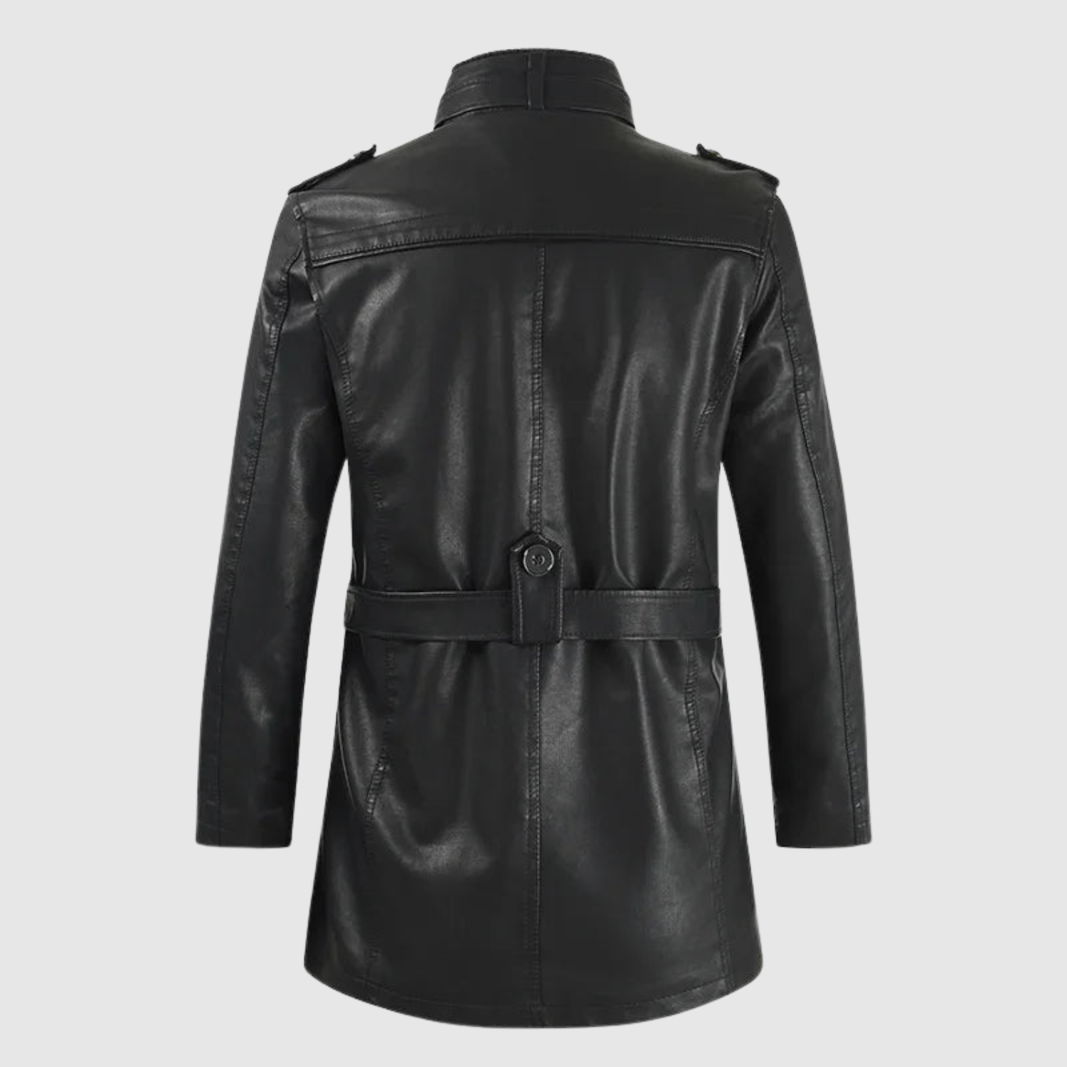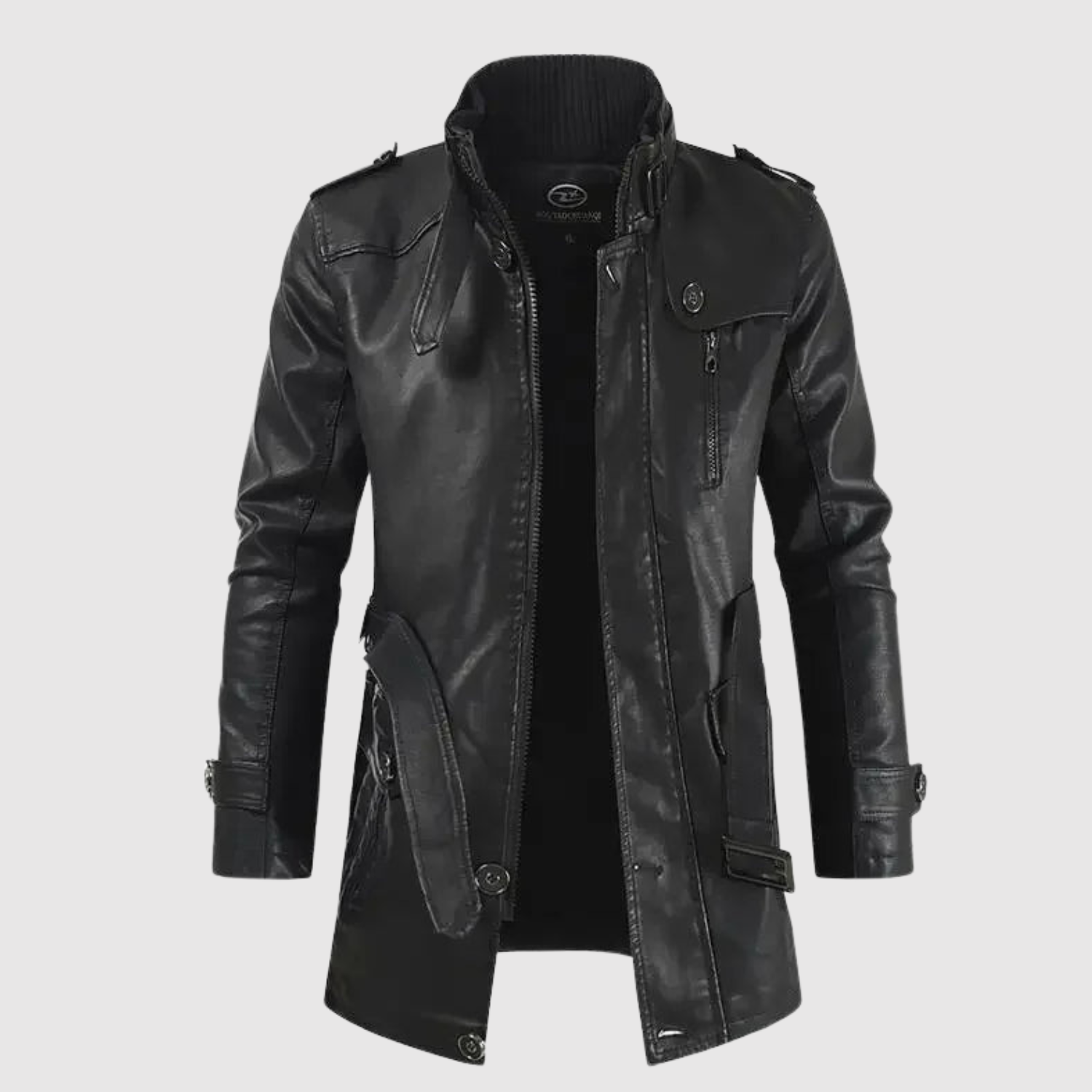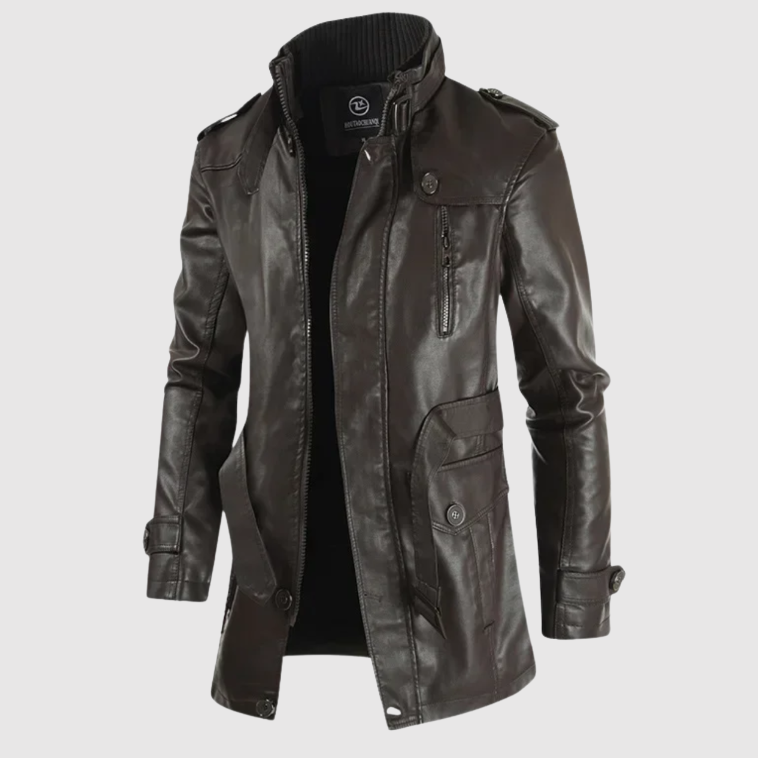 Това яке впечатлява с модерната си дължина и изчистен силует. Изработено от висококачествена еко кожа, то придава на всеки мъж уверено и стилно излъчване. Високата яка и здравият цип осигуряват комфорт и защита в хладните дни.