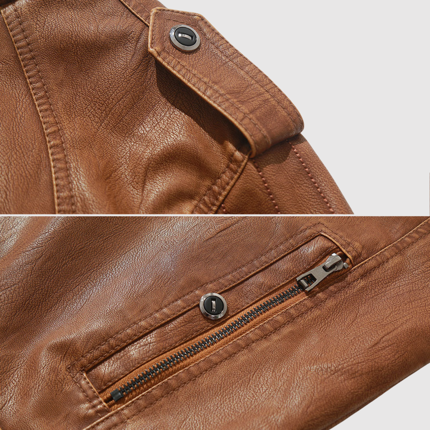 Това яке е идеалното съчетание между здравина и елегантност. Изработено от висококачествена еко кожа с мека вълнена подплата, то предлага изключителен комфорт през студените дни. Детайлите с цип и контрастната текстура придават модерен вид, без да се жертва класическата визия.